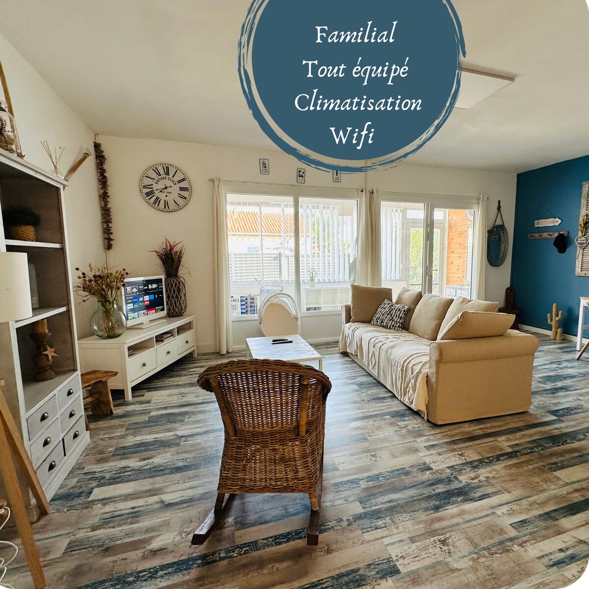 डौल तलावाच्या काठावरील एक मोहक गाव, सिगियन आफ्रिकन रिझर्व्हपासून 5 मिनिटांच्या अंतरावर आणि नार्बोन आणि ग्रँड्स बफेपासून 15 मिनिटांच्या अंतरावर असलेल्या पेरिआक - डी - मेरमध्ये तुमचे स्वागत आहे. बाहेरील अंगण असलेल्या 60m2 च्या T2 टाऊनहाऊसमध्ये आम्ही तुमचे स्वागत करतो, ज्याचे आम्ही पूर्णपणे नूतनीकरण केले आहे. तुमच्या वास्तव्याच्या आरामासाठी, घरात बेडरूम आणि लिव्हिंग रूममध्ये एअर कंडिशनिंग आहे आणि आमच्याकडे तुमच्या विल्हेवाटात दोन बाईक्स आहेत.