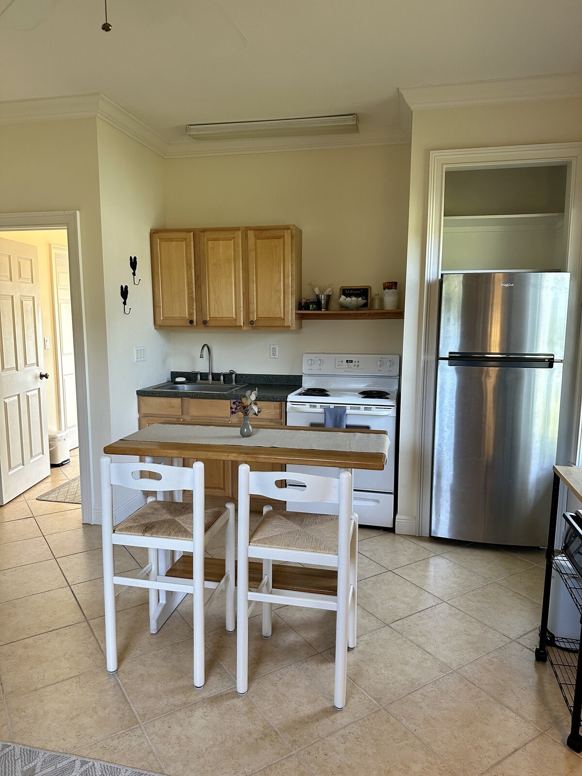 आम्ही सर्वकाहीपासून 10-15 मिनिटांच्या अंतरावर आहोत, बीचपासून, किराणा दुकानांपासून आणि आश्चर्यकारक खाद्यपदार्थांपासून. आमचे घर तलावाच्या काठावर 0.5 एकर जागेवर आहे आणि आमचे शेजारी खूप छान आहेत, परंतु बहुतेक लोक एकटे राहतात. सुईटमध्ये खाजगी प्रवेशद्वार (फ्रेंच दरवाजे), मिनी-फ्रिजपेक्षा मोठे, मायक्रोवेव्ह (एअर-फ्रायर म्हणून दुप्पट), नेस्प्रेसो कॉफी, एक पूर्ण आकाराचे कपाट आणि बफे कॅबिनेटमध्ये बिल्ट इन केलेला एक छोटा किचन सिंक आहे; साइटवर लॉन्ड्री नाही (अद्याप), परंतु सर्व काही फक्त थोड्या अंतरावर आहे.