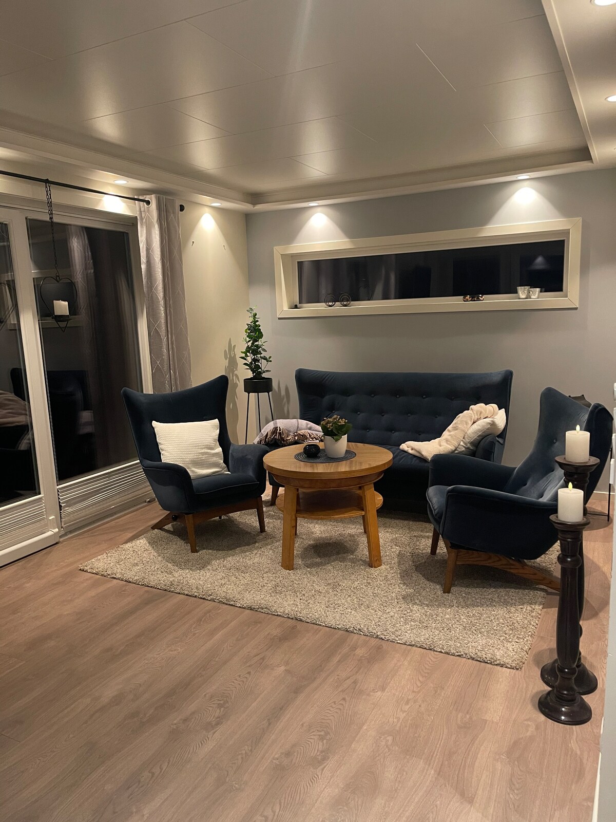 Ulsteinvik मधील आमच्या अपार्टमेंटमध्ये तुमचे स्वागत आहे! येथे तुम्ही मध्यभागी राहता, मग तुम्हाला आमच्या जवळपासच्या भागात हाईक्ससाठी जायचे असेल किंवा शहराच्या मध्यभागी किराणा दुकान घ्यायचे असेल. अपार्टमेंट सोपे आहे, परंतु त्यात तुम्हाला आवश्यक असलेल्या सर्व गोष्टी आहेत.