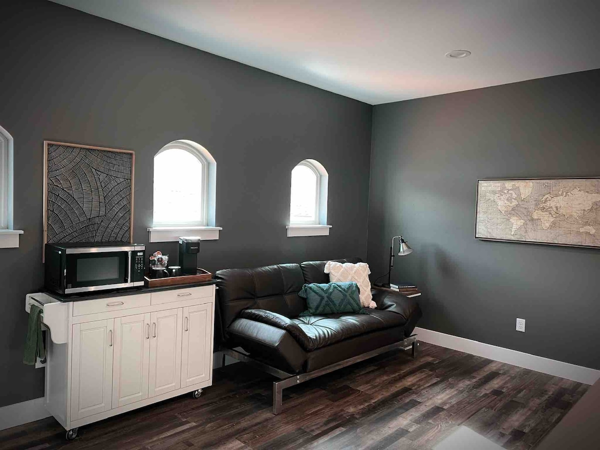 मध्यवर्ती ठिकाणी असलेल्या या रिट्रीटमध्ये स्टाईलिश अनुभवाचा आनंद घ्या! मॉल, शॉपिंग, डायनिंग आणि टॉप वाईनरीजपासून 3 मैलांच्या अंतरावर. आलिशान, प्रशस्त शॉवरमध्ये आराम करा, आरामदायक किंग - साईझ बेडमध्ये लाऊंज करा किंवा तुमच्या स्वतःच्या वर्क स्टेशनवर उत्पादनक्षम व्हा. टीपः हे आमच्या कुटुंबाच्या राहण्याच्या जागेखाली तळघरातील वॉक - आऊट अपार्टमेंट आहे. आम्ही ध्वनी ट्रान्सफर काढून टाकण्यासाठी मोठ्या प्रमाणावर गेलो आहोत, तरीही तुम्हाला वरील अधूनमधून पायऱ्या ऐकू येतील (विशेषत: सकाळी 7 -9 आणि सायंकाळी 5 -7).
