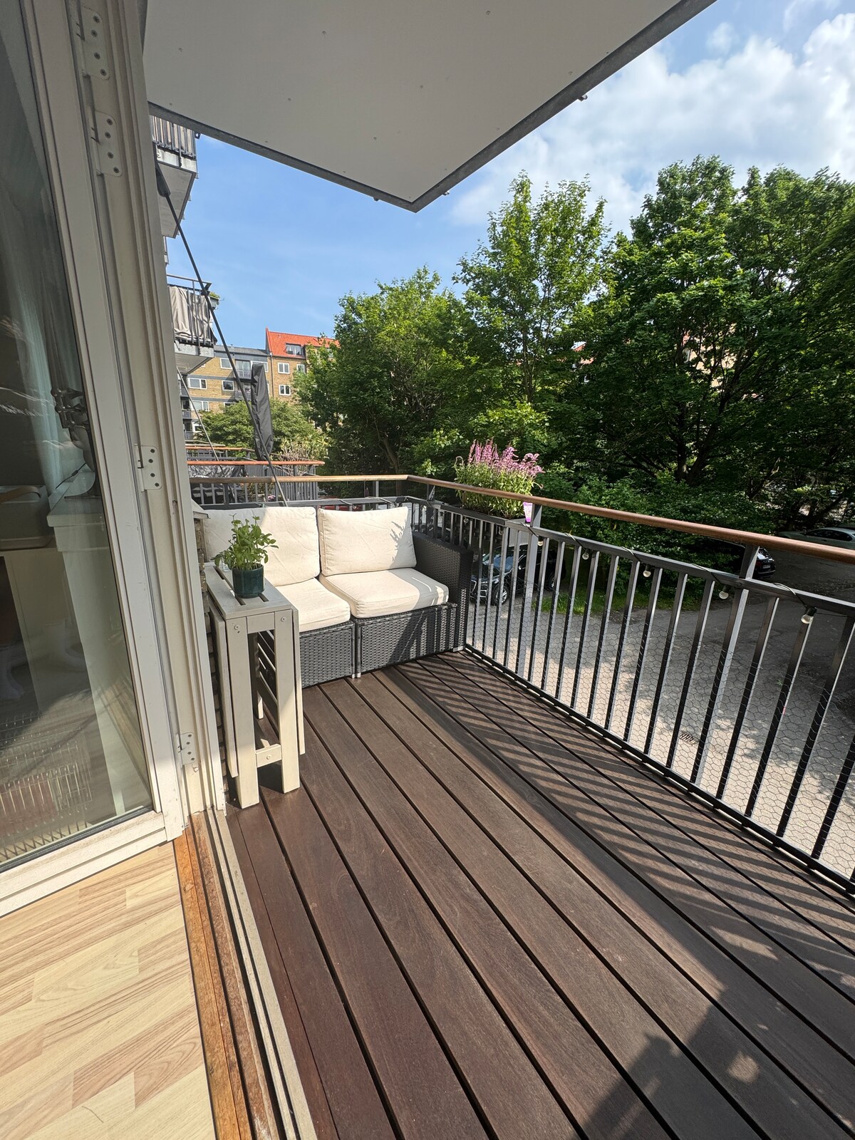 पहिल्या मजल्यावरील माझ्या अपार्टमेंटमध्ये (66 चौरस मीटर आणि एक लहान बाल्कनी) तुमचे स्वागत आहे. अपार्टमेंट वेस्टरब्रोगेडपासून मागे एका लहान बंद ओएसिसमध्ये स्थित आहे ज्यामध्ये टेबल्स आणि बेंचसह आरामदायक अंगणाचा प्रवेश आहे. 1855 पासून असलेल्या या प्रॉपर्टीमध्ये लिफ्ट आहे आणि पूर्वी ती एक ब्रुअरी होती. गेटच्या बाहेर रेस्टॉरंट्स आणि कॅफे आहेत आणि चालण्याच्या अंतरावर (5 मिनिटे) शॉपिंग आहे. मेट्रोपर्यंत सुमारे 8 मिनिटांचा पायी प्रवास आहे (सिटी सेंटरपर्यंत 3 स्टॉप्स), बसपर्यंत 2 मिनिटे.