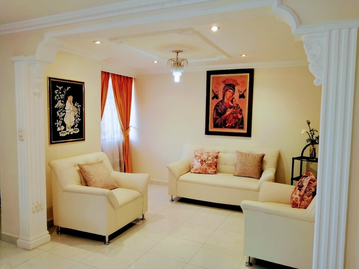 संपूर्ण कुटुंबाला या विलक्षण निवासस्थानी घेऊन जा जिथे भरपूर जागा आहे, ती स्वच्छ, शांत आणि नैसर्गिक प्रकाशासह आहे, मजा आणि विश्रांतीसाठी परिपूर्ण आहे. हे शहराच्या मध्यभागी असलेल्या बंद सेटमध्ये स्थित आहे, ते कौटुंबिक वास्तव्यासाठी, कामाच्या ट्रिप्ससाठी किंवा खरेदीसाठी आदर्श आहे कारण त्याचे लोकेशन तुम्हाला शहरात कुठेही पटकन पोहोचण्याची परवानगी देते
