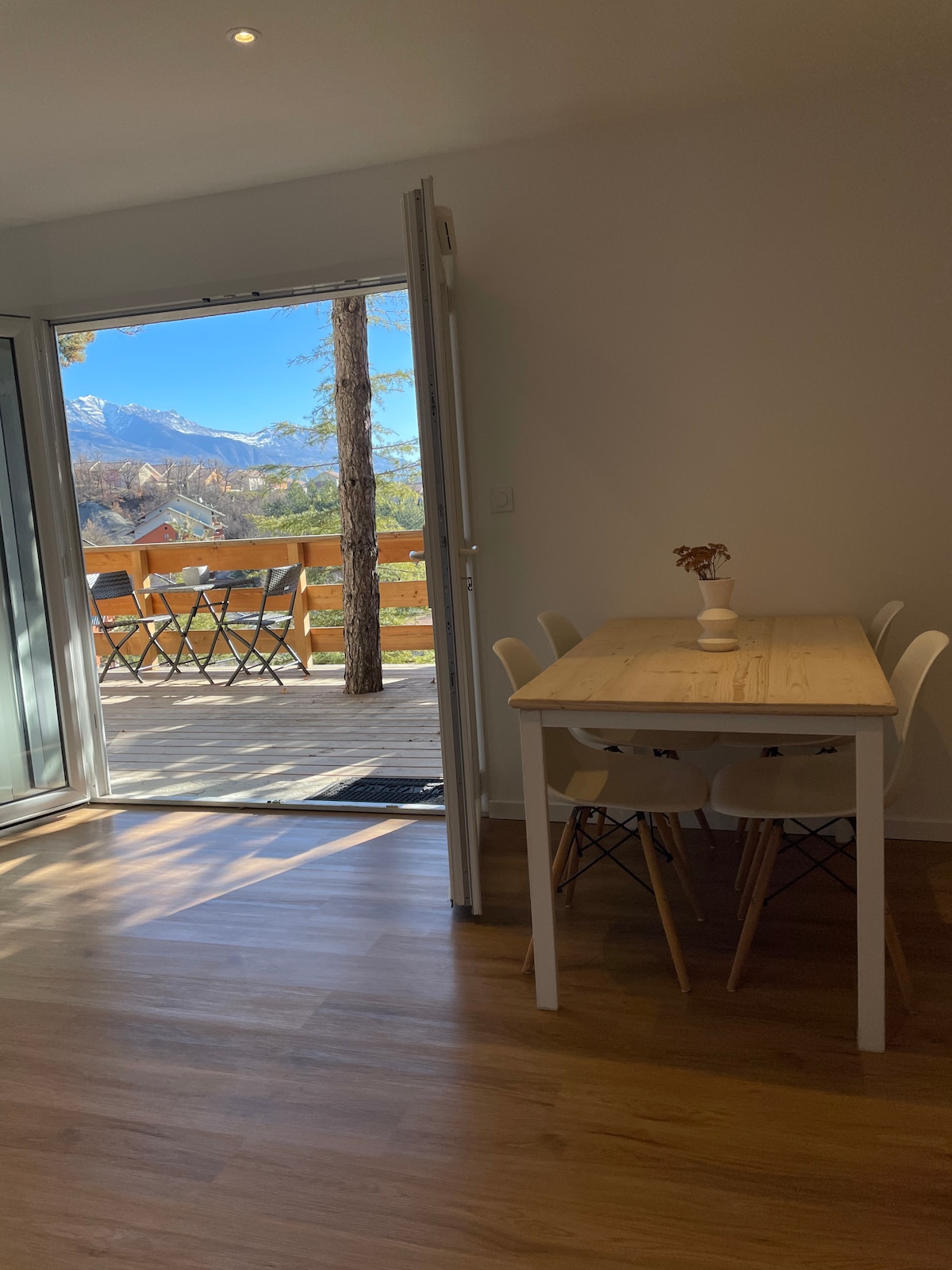 नवीन आणि प्रशस्त निवासस्थान. डेकवरून पर्वतांचे दृश्य. आमच्या घराच्या तळमजल्यावर असलेल्या अपार्टमेंटमध्ये पूर्णपणे स्वतंत्र ॲक्सेस आहे. दुर्लक्ष केले नाही, विनामूल्य पार्किंग. 400 मीटर्सवर दुकाने, सिटी सेंटरपासून 5 मिनिटांच्या अंतरावर. कृपया लक्षात घ्या: ॲक्सेसची जिना अनियमित आहे आणि 10 अरुंद पायऱ्यांसह 30 पायऱ्या आहेत. दिव्यांग लोकांसाठी योग्य नाही. आम्ही चादरी देतो पण कृपया तुमचे टॉवेल्स घेणे लक्षात ठेवा.