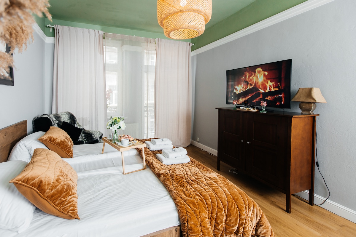या अनोख्या जागेची स्वतःची स्टाईल आहे. आम्ही एक इंटिरियर तयार केले आहे जिथे प्रत्येकाला घरी असल्यासारखे वाटेल. अपार्टमेंटमध्ये तुम्हाला लहान आणि दीर्घ क्षण घालवण्यासाठी आवश्यक असलेल्या सर्व गोष्टी आहेत. एक संशयास्पद फायदा म्हणजे भूमिगत पार्किंगची जागा जिथे आम्ही कार आणि सायकल स्टोरेज देखील सोडू शकतो. संपूर्ण ट्राय - सिटी एक्सप्लोर करण्यासाठी आणि एक्सप्लोर करण्यासाठी एक उत्कृष्ट बेस.