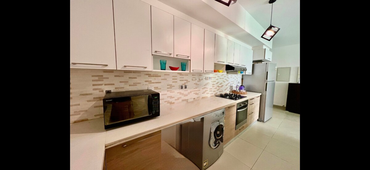 या अनोख्या शांत आणि शांत सुट्टीचा आनंद घ्या, जिथे सूर्य नेहमीच चमकत असतो आणि मूड नेहमीच चांगला असतो,हे एक 2 बेडरूमचे अपार्टमेंट आहे जे तुम्हाला अल्पकालीन किंवा दीर्घकाळ वास्तव्यासाठी आवश्यक असलेल्या सर्व गोष्टींनी सुसज्ज आहे. दृश्ये, सूर्य , वाळू आणि या जागेने ऑफर केलेल्या सर्व गोष्टींचा आनंद घेण्यासाठी तुमचे स्वागत आहे. तेथे सुपरस्पीड वायफाय, संपूर्ण किचन, टीव्ही, साऊंड सिस्टम आणि बरेच काही आहे, ते मरीना 7 च्या मध्यभागी स्थित आहे, तेथे सुपरमार्केट्स, रेस्टॉरंट्स आणि तुम्हाला आवश्यक असलेल्या सर्व गोष्टी 10 मिनिटांपेक्षा कमी अंतरावर आहेत 💕