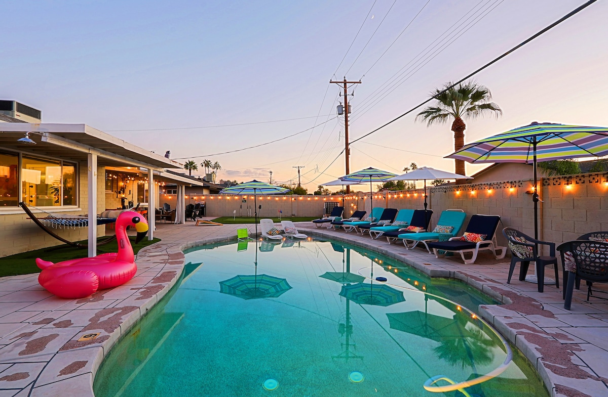 माझ्या नॉर्थ टेम्प रिट्रीटमध्ये तुमचे स्वागत आहे. आरामदायी आणि करमणुकीच्या उत्तम मिश्रणासह तुमच्याकडे दोन प्रशस्त लिव्हिंग रूम्स असतील, शेफचे किचन असेल ज्यात तुम्हाला आवश्यक असलेली सर्व उपकरणे असतील, गरम पूल (उष्णतेच्या खर्चाची चौकशी करा), बार्बेक्यू, प्रत्येक रूममध्ये हिरवा, पूल टेबल आणि टीव्ही ठेवणे. तुम्ही पूलमध्ये आराम करण्याचा विचार करत असाल किंवा तुमच्या छोट्या खेळावर काम करण्याचा विचार करत असाल तर हे Airbnb एक अविस्मरणीय वास्तव्य करण्याचे वचन देते. 4 मोठ्या बेसबॉल टीम्स, एअरपोर्ट, एएसयू आणि ओल्ड टाऊन दरम्यान पूर्णपणे स्थित. ही तुमची परफेक्ट गेटअवे आहे!