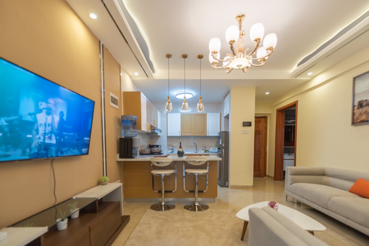 आम्ही तुम्हाला नैरोबीच्या अगदी बाहेरील टाटू सिटीमध्ये असलेल्या आमच्या दोन बेडरूमच्या आधुनिक अपार्टमेंटमध्ये शहराच्या बाहेरील उर्जा आणि सुंदर परिसराच्या परिपूर्ण मिश्रणाचा आनंद घेण्यासाठी आमंत्रित करतो. आमच्या घराला पूर्णपणे सुसज्ज जिम, स्विमिंग पूल आणि मुलांचे खेळाचे क्षेत्र, तुमच्या दाराजवळ डिलिव्हरी सेवा असलेले 24 - तासांचे मिनी सुपरमार्केट, पूलसाइडजवळील रेस्टॉरंट/ थंड जागा आणि तुमचे मन आणि आत्मा ताजेतवाने करणाऱ्या हिरव्यागार जागांचे शांत आकर्षण यासारख्या अतुलनीय सुविधांचा सहज ॲक्सेस आहे.