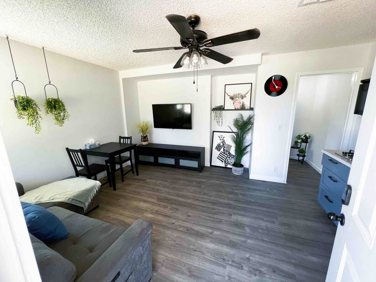 युनिटमध्ये स्वतःच्या खाजगी एंट्रीसह उत्तम आसपासच्या परिसरात आरामदायक खाजगी गेस्ट सुईट. 1 बेडरूम स्टुडिओ w/ क्वीन साईझ बेड. फ्युटन स्टुडिओमध्ये तृतीय व्यक्तीसाठी देखील उपलब्ध आहे. किचनमध्ये रेफ्रिजरेटर, कॉफी मेकर आणि मायक्रोवेव्ह पुरवले जातात. डिस्पोजेबल प्लेट्स आणि कप्ससह. बाथरूममध्ये वाई/ टॉयलेट पेपर, टॉवेल्स, शॅम्पू आणि साबण आहे. तुमच्या वापरासाठी प्रदान केलेले इस्त्री आणि ब्लो ड्रायर. गेस्ट एरिया खाजगी आहे आणि स्वतःचा खाजगी पॅटिओ आहे. तुम्हाला एक ऑफ स्ट्रीट पार्किंग दिले जाते.