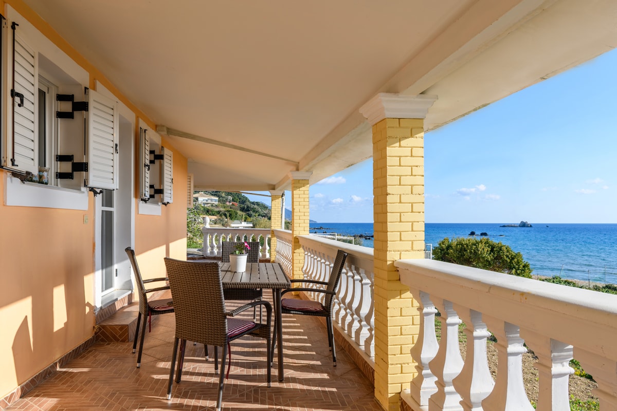 The Old Kafeneion apt, located in Psaras, in Corfu, is a ground-floor retreat offering serene views of the garden and sea. It features a private garden plot with direct access to the beach. Enjoy the tranquil scenery from your balcony, which faces the garden and sea, or relax in your shaded personal outdoor sitting area. Inside, you'll find a cozy bedroom with a queen-size bed, a fully equipped kitchen with all basic amenities and a washing machine, and a bathroom with a rain shower