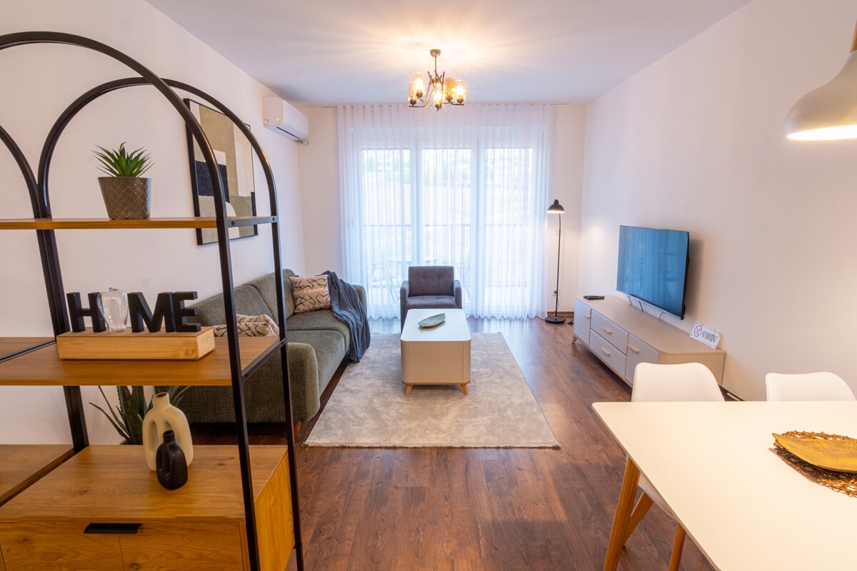 प्रिश्टिनाच्या शहर मध्यभागीपासून काही मिनिटांच्या अंतरावर असलेल्या एका उज्ज्वल, प्रशस्त आणि आधुनिक 1-बेडरूम अपार्टमेंटमध्ये राहा. सोपे 24/7 स्वतःहून चेक इन, वेगवान वाय-फाय, बाल्कनी आणि रोबोट व्हॅक्यूमद्वारे पूर्ण केली जाणारी उच्च पातळीची स्वच्छता यामुळे अल्प किंवा दीर्घ कालावधीच्या वास्तव्यांसाठी आरामदायक वातावरण मिळते. सुरक्षित आणि शांत परिसरात वसलेले हे अपार्टमेंट बस स्टँडपासून 2 मिनिटांच्या अंतरावर आहे आणि कॅफे, रेस्टॉरंट्स आणि शॉपिंग सेंटरच्या जवळ आहे, तुम्हाला आवश्यक असलेल्या सर्व गोष्टी सहज उपलब्ध आहेत. विनामूल्य पार्किंग उपलब्ध आहे. पूर्णपणे सुसज्ज किचन आणि साफसफाईचे सामान.