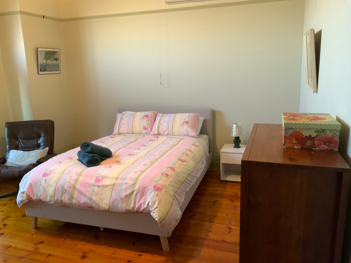 गिलॉंग द क्लब हाऊस निवासस्थानाच्या अगदी मध्यभागी स्थित हे गुणवत्ता, प्रायव्हसी, लोकेशन, भाडे पॉईंट आणि लोकेशन लोकेशनचे परिपूर्ण मिश्रण आहे. क्वीन साईझ बेड, मोठा टीव्ही, किचनचा ॲक्सेस आणि रायरी आणि यारा स्ट्रीटच्या कोपऱ्यात, 300 मीटर ते गिलॉंग हॉस्पिटल 200 ते सीबीडी आणि 450 ते वॉटरफ्रंट आणि यॉट क्लब. दुसऱ्या मजल्यावरील खाजगी रूम ज्यामध्ये शेअर बाथरूम आहे (फक्त 3 रूम्सच्या दरम्यान) रायरी स्ट्रीटच्या पलीकडे डबल ग्लेझेड खिडक्या विनामूल्य पार्किंग आहे