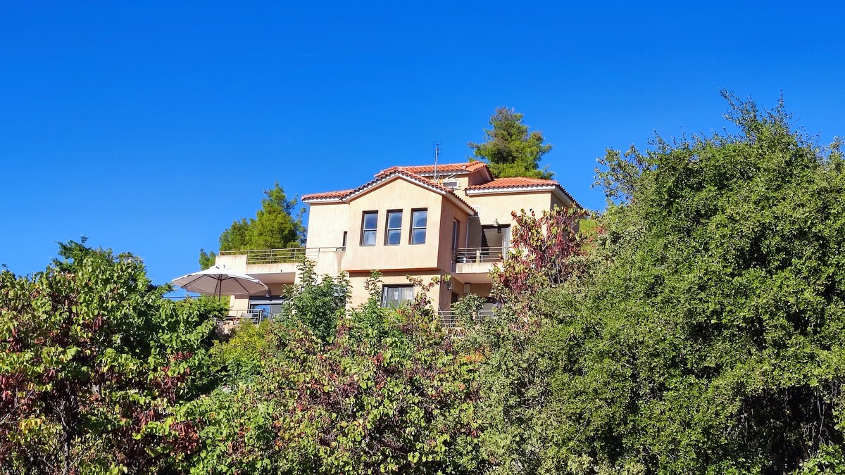 A modern country house, an elegant yet familiar environment a place created for those seeking a peaceful atmosphere between nature, good food, and beauty. The island of Evia offers the best solution for those who want to enjoy summer vacation near the sea, but donтАЩt want to miss out on all the comfort that the big city offers, only 99km from Athens,130km from Athens airport. Large private outdoor spaces, with private pool & garden. Live a unique experience, between culture, relaxation & nature.