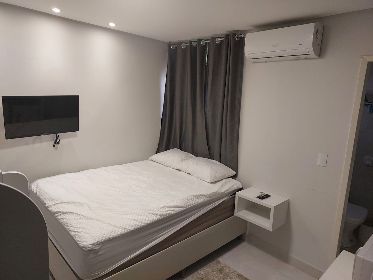 आमच्या मोहक अपार्टमेंटमध्ये तुमचे स्वागत आहे! पूर्णपणे सुसज्ज, स्वतंत्र बेडरूम, किचन आणि बाथरूमसह, ही जागा आरामदायक वास्तव्यासाठी योग्य जागा आहे. किचनमध्ये मूलभूत भांडी आहेत. बाथरूम स्वच्छ आणि आधुनिक आहे, आरामदायक वातावरण प्रदान करते. उबदार आणि सुशोभित रूम, बीचवर आरामदायक दिवसानंतर आराम करण्यासाठी योग्य जागा आहे. प्रिया डो मोरोमध्ये असलेल्या आमच्या अद्भुत आपमध्ये शांत आणि स्वागतार्ह वास्तव्याचा आनंद घ्या!