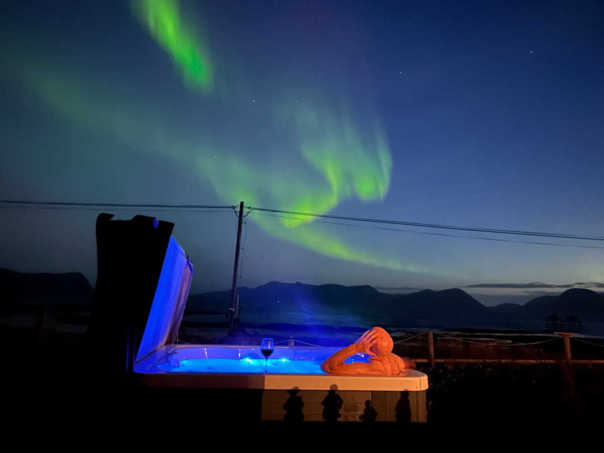 ट्रॉम्स शहरापासून 1 तासांच्या अंतरावर असलेल्या ग्रामीण भागातील समुद्राजवळील सुंदर आणि गलिच्छ घर. हिवाळ्यात हायकिंग, स्कीइंग, मासेमारी आणि मध्यरात्रीचा सूर्य आणि हिवाळ्यात अरोरा बोअरेलिस पाहण्यासाठी हा प्रदेश उत्तम आहे. शुल्कासाठी, आमचे गेस्ट्स ओशन सॉना हॉट टब सुविधा देखील बुक करू शकतात, ज्यात फायरप्लेस आणि आरामदायक इनडोअर थंड झोन असलेल्या मोठ्या आऊटडोअर डेकवर लाकडी हॉट - टब आणि सॉना ठेवलेले आहेत. गेस्ट्स उन्हाळ्याच्या हंगामात आमची 12 फूट रोईंग बोट आणि काही फिशिंग गियर विनामूल्य वापरू शकतात.