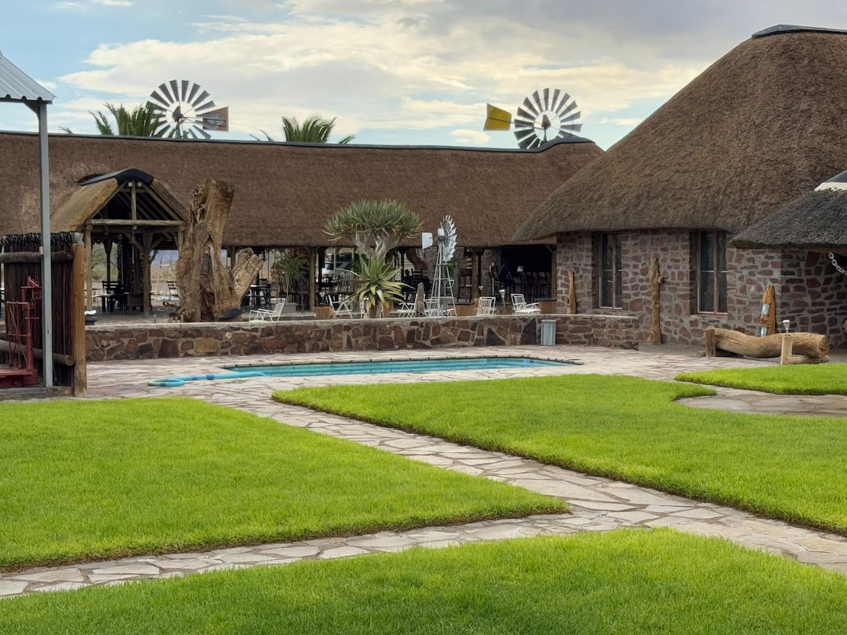 अनंत वाळवंट आणि अप्रतिम माऊंटन व्हिस्टा यांनी वेढलेले, स्टोन रिव्हर कॉटेज ही एक परिपूर्ण सेल्फ - कॅटरिंग सफारी आस्थापना आहे. नामिब नौकलफ्ट नॅशनल पार्कच्या शेजारच्या भागात तुम्ही लुप्तप्राय हार्टमनचे माऊंटन झेब्रा, ओरिक्स, कुडू, स्प्रिंगबोक, वॉरथॉग आणि कधीकधी जिराफ तुमच्या समोरच्या व्हरांडावर अक्षरशः पाहू शकता. हे इको - फ्रेंडली निवासस्थान नामिबियाच्या सर्वात लोकप्रिय पर्यटन क्षेत्रात आढळते आणि तेथून तुमची प्रेक्षणीय स्थळे आणि साहसी ट्रिप्स सुरू करण्यासाठी एक रोमांचक आधार म्हणून काम करते.