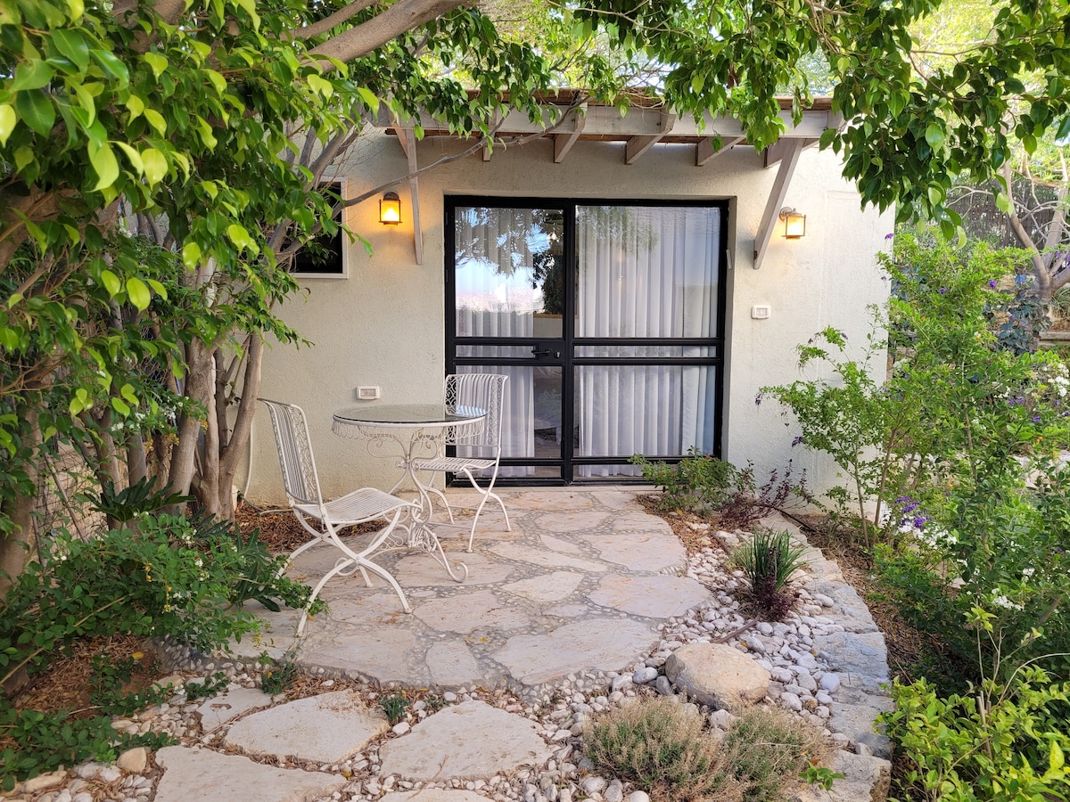 рдмреЗрдд рдЭреИрдЯ рдЧрд╛рд╡рд╛рдордзреНрдпреЗ рд╡рд╕рд▓реЗрд▓реЗ, рдЬреЗрд░реБрд╕рд▓реЗрдордЪреЗ рдЬрдВрдЧрд▓ рдЖрдгрд┐ рдИрди рдХрд╛рд░реЗрдо рдпрд╛ рд╕реНрд╡рддрдГрдЪреНрдпрд╛ рдЦрд╛рдЬрдЧреА рдЧрд╛рд░реНрдбрдирд╕рд╣ рдПрдХ рдЖрд░рд╛рдорджрд╛рдпреА рдЕрдкрд╛рд░реНрдЯрдореЗрдВрдЯ, рдЬреЗ рдпреБрдХрд╛рдкрд▓рд┐рдкреНрдЯрд╕ рдЭрд╛рдбреЗ, рд╕рд╛рдпрдкреНрд░реЗрд╕реЗрд╕, рдХреЕрдХреНрдЯрд╕ рдЖрдгрд┐ рдСрд▓рд┐рд╡реНрд╣рдЪреНрдпрд╛ рдЭрд╛рдбрд╛рдВрдЪреНрдпрд╛ рдЬрд╡рд│рдЬрд╡рд│ рдПрдХ рдПрдХрд░ рдЬрдорд┐рдиреАрдиреЗ рд╡реЗрдврд▓реЗрд▓реНрдпрд╛ рд╡реНрд╣рд┐рд▓рд╛рдордзреНрдпреЗ рд╕реНрдерд┐рдд рдЖрд╣реЗ. рдЖрдореНрд╣рд╛рд▓рд╛ рдкрд╛рд│реАрд╡ рдкреНрд░рд╛рдгреА рдЖрд╡рдбрддрд╛рдд рдЖрдгрд┐ рдЖрд╡рд╛рд░рд╛рдд 2 рдореИрддреНрд░реАрдкреВрд░реНрдг рдХреБрддреНрд░реЗ рдЖрдгрд┐ рдПрдХ рдорд╛рдВрдЬрд░ рдЖрд╣реЗрдд, рдорд╛рдЭреНрдпрд╛рдХрдбреЗ рдмрд╛рдЧреЗрдЪреНрдпрд╛ рд╡реЗрдЧрд│реНрдпрд╛ рднрд╛рдЧрд╛рдд рдХрд╛рд╣реА рд╡рд┐рдирд╛рдореВрд▓реНрдп рд░реЗрдВрдЬ рдХреЛрдВрдмрдбреА рдЖрдгрд┐ рдмрджрдХреЗ рджреЗрдЦреАрд▓ рдЖрд╣реЗрдд. рдмреЗрди рдЧреБрд░рд┐рдпрди рд╡рд┐рдорд╛рдирддрд│рд╛рдкрд╛рд╕реВрди 30 рдорд┐рдирд┐рдЯрд╛рдВрдЪреА рд░рд╛рдИрдб, рдЬреЗрд░реБрд╕рд▓реЗрдордЪреНрдпрд╛ рдордзреНрдпрднрд╛рдЧреА 10 рдорд┐рдирд┐рдЯреЗ.