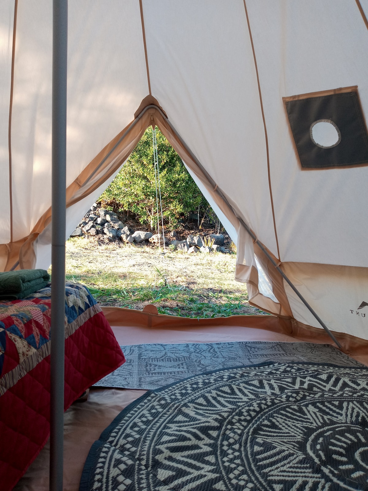 Escape to Nature! Looking for the perfect off-grid getaway? ЁЯМ┐ What We Offer: тАвBeautifully crafted 16 foot bell tent and WiFi тАвComfortable amenities: queen size bed, solar-powered lights, and outdoor showers and real toilet. тАвStargazing from your private deck тАвEasy access to Haleiwa Town and natural wonders. тЬи Why Choose Us? Unplug and recharge. Whether youтАЩre seeking solitude or a romantic retreat, our off-grid glampsite offers the tranquility of nature without sacrificing comfort.