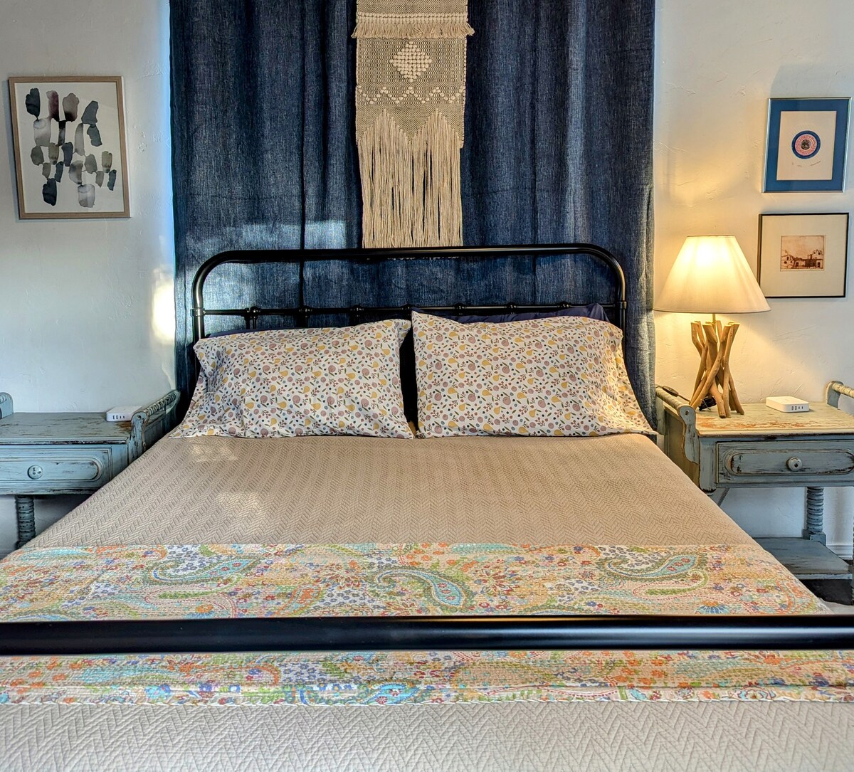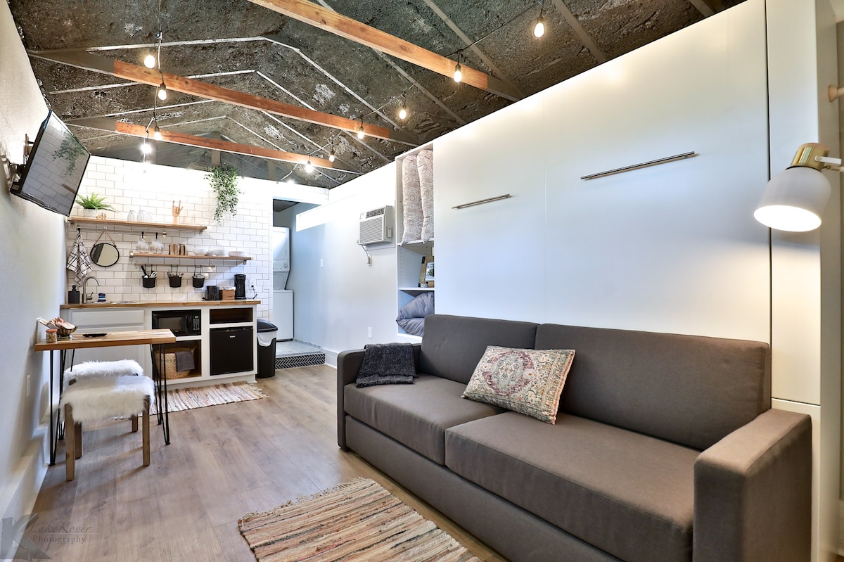 हे नवीन बॅकयार्ड गेस्ट हाऊस झाडांनी झाकलेल्या रस्त्यावर आहे. गॅस रेंज असलेले पूर्ण किचन वीकेंडच्या डिनरसाठी किंवा जास्त काळ राहण्यासाठी योग्य आहे. सजावटीचे स्वागत चिन्ह दोनसाठी एका टेबलापर्यंत फोल्ड होते. लिव्हिंग रूम ही वायफाय आणि AppleTV किंवा पुस्तकांच्या वर्गीकरणासह आराम करण्यासाठी एक परिपूर्ण जागा आहे. हे पाळीव प्राण्यांसाठी अनुकूल आहे आणि, आवश्यक असल्यास, मुलांना फ्लोअर पॅलेट्सवर सामावून घेऊ शकते. हे घर आमच्या कुटुंबाच्या अंगणात आहे, परंतु तुम्ही खाजगी वास्तव्य केले आहे याची आम्ही खात्री करतो.