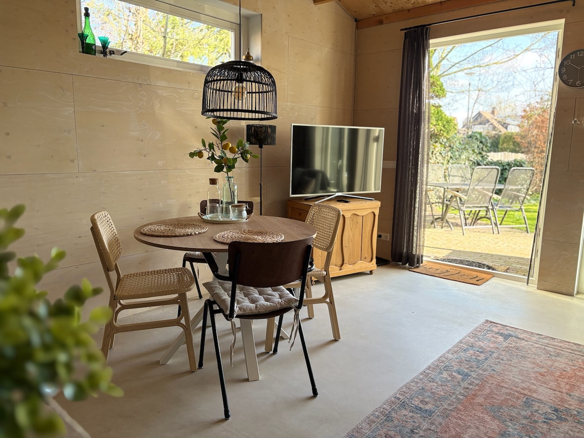 2 लोकांसाठी शांत, मध्यवर्ती निवासस्थान. समुद्र, समुद्रकिनारा आणि शहराजवळ (अल्कमार, हार्लेम, अॅमस्टरडॅम). स्वतंत्र प्रवेशद्वार आणि स्लाइडिंग दरवाजा असलेली छान कॉटेज, फर्निचरसह छोटासा टेरेस. ओव्हनसह संपूर्णपणे सुसज्ज स्वयंपाकघर. लाकडी स्टोव्ह, कॉर्नर सोफा आणि स्मार्ट टीव्ही. वरच्या मजल्यावर जाण्यासाठी स्थिर पायर्या (व्हिडिओ). वरच्या मजल्यावर उभे राहण्याची उंची 1.30 सेमी आहे! डबल बेड 1.80x2.20cm. रेन शॉवर/टॉयलेट. मुलांसाठी योग्य नाही. पाळीव प्राणी नाहीत. धूम्रपान करण्यास परवानगी नाही.