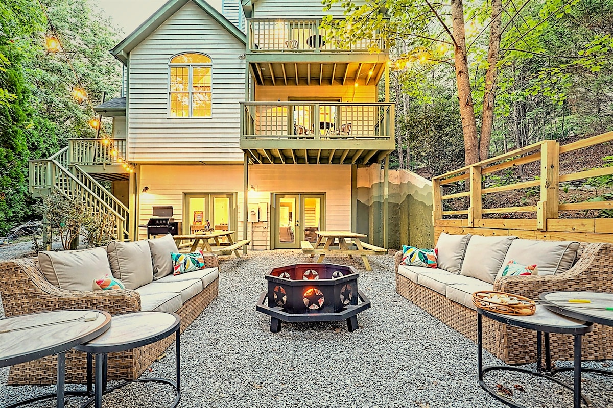 हॉट टब आणि गेम रूमसह आधुनिक माऊंटन ओएसिस