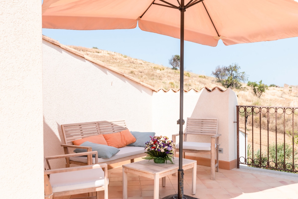 A peaceful 2 bedrooms apartment furnished with everything you need for a comfortable and enjoyable stay. The place is very special, relaxing and quiet surrounded by trees and gardens. There's a lovely terrace with beautiful landscape and sunset views, and one in the backyard. Huge land to walk around with olive and almond orchards, plus various fruit trees and more. Distant only 2.5km from Bovo Marina and 6km from the idyllic Torre Salsa Natural Reserve. *We will plant a tree for every booking