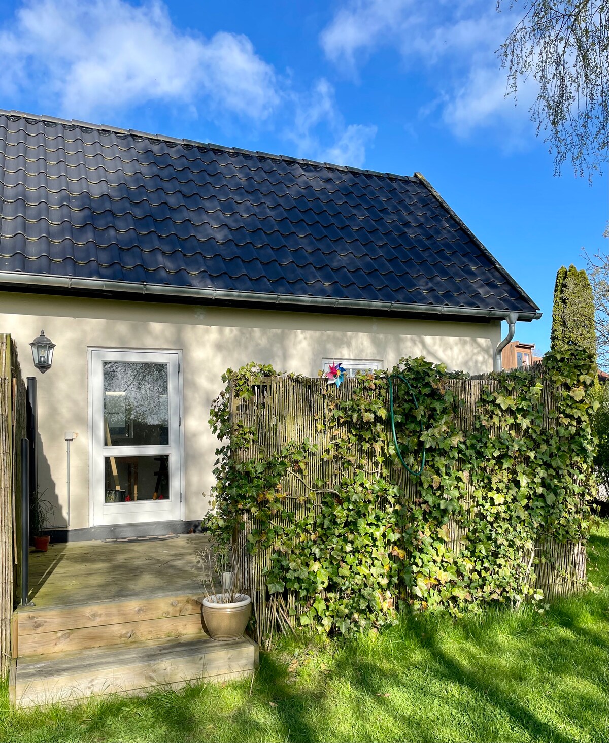 मोहक आणि नव्याने नूतनीकरण केलेले गेस्टहाऊस, हिलरडच्या मध्यभागी शांत वातावरणात आदर्शपणे स्थित आहे. हे घर ऐतिहासिक किल्ला पार्क, पादचारी रस्ता आणि कोपनहेगनपासून फक्त 35 मिनिटांच्या अंतरावर असलेल्या स्टेशनपासून थोड्या अंतरावर असलेल्या शांत भूखंडावर आहे. नवीन किचन आणि बाथरूम व्यतिरिक्त, हे घर एक प्रशस्त बेडरूम आणि एक आरामदायक लिव्हिंग रूम देते. तुम्हाला अपॉइंटमेंटनुसार वॉशिंग मशीनचा ॲक्सेस असेल. घर दोन प्रौढांसाठी आदर्श आहे, परंतु दोन मुले किंवा प्रौढ लिव्हिंग रूममधील सोफा बेडवर आरामात राहू शकतात.