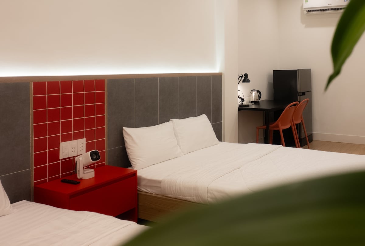 Our home is inspired by Hoi An Ancient Town right in the heart of Da Nang city Attractive amenities: - Free Welcome drink - Free use of tea, coffee, mineral water in the room - Free daily room cleaning - Fully furnished room with 1 Queen Size Bed, smart TV, AC, telephone, wardrobe and bathroom with free toiletries Prime location, surrounded by famous places and bustling culinary areas: - Right next to Huynh Thuc Khang culinary street, only 2 minutes walk - Near Dragon Bridge (7 minutes walk)