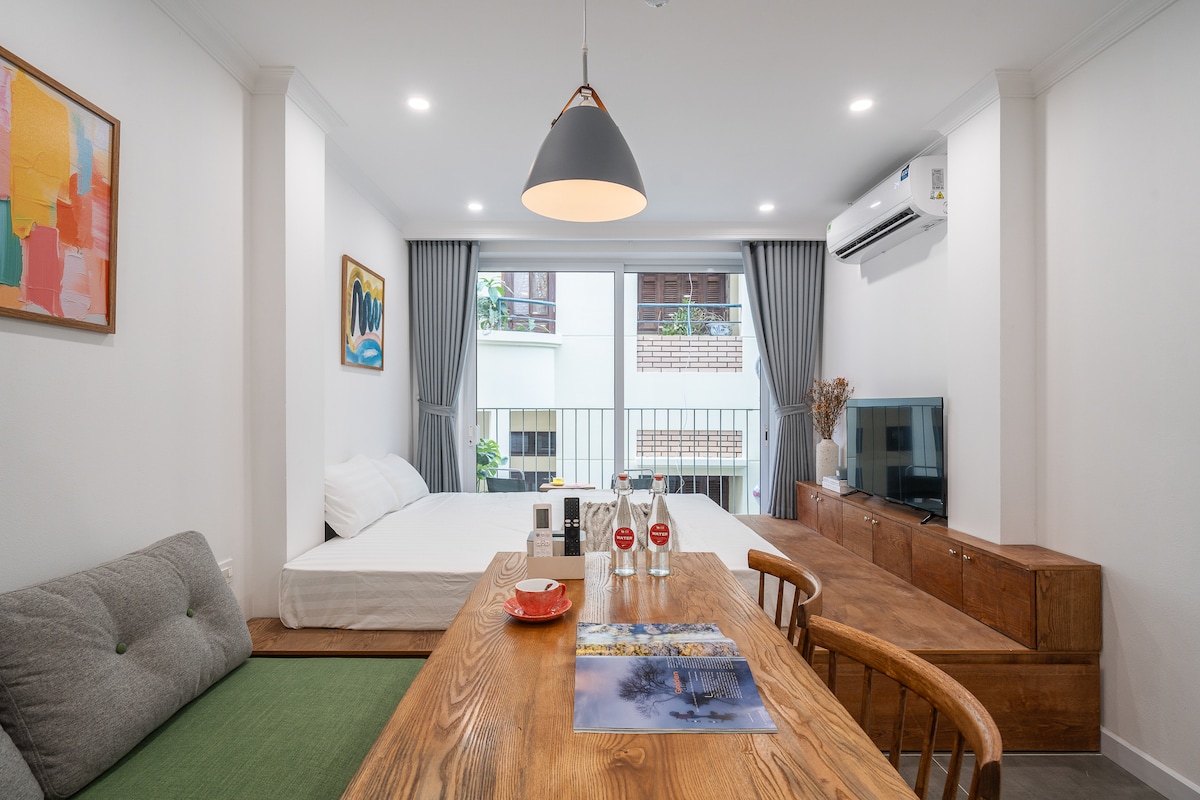शांत आसपासच्या परिसरात, लेक, पपेट थिएटर, हिस्टरी म्युझियम, बिअर स्ट्रीट आणि अनेक रेस्टॉरंट्सच्या अंतरावर असलेल्या आमच्या स्टाईलिश बुटीक अपार्टमेंटमध्ये स्थानिक कला आणि हस्तकला असलेले अप्रतिम इंटिरियर डिझाइन आहे. आधुनिक सुखसोयी आणि अंतिम प्रायव्हसीसह नॉस्टॅल्जिक मोहकतेचा अनुभव घ्या. अपार्टमेंटमध्ये किचन, वॉशर, प्रशस्त बाथरूम, लक्झरी आधुनिक फिटिंग्ज आणि एक अतिशय आरामदायक विशाल गादी पूर्णपणे सुसज्ज आहे. घराच्या सर्व सुखसोयींसह हनोईमध्ये संस्मरणीय वास्तव्याचा आनंद घ्या.