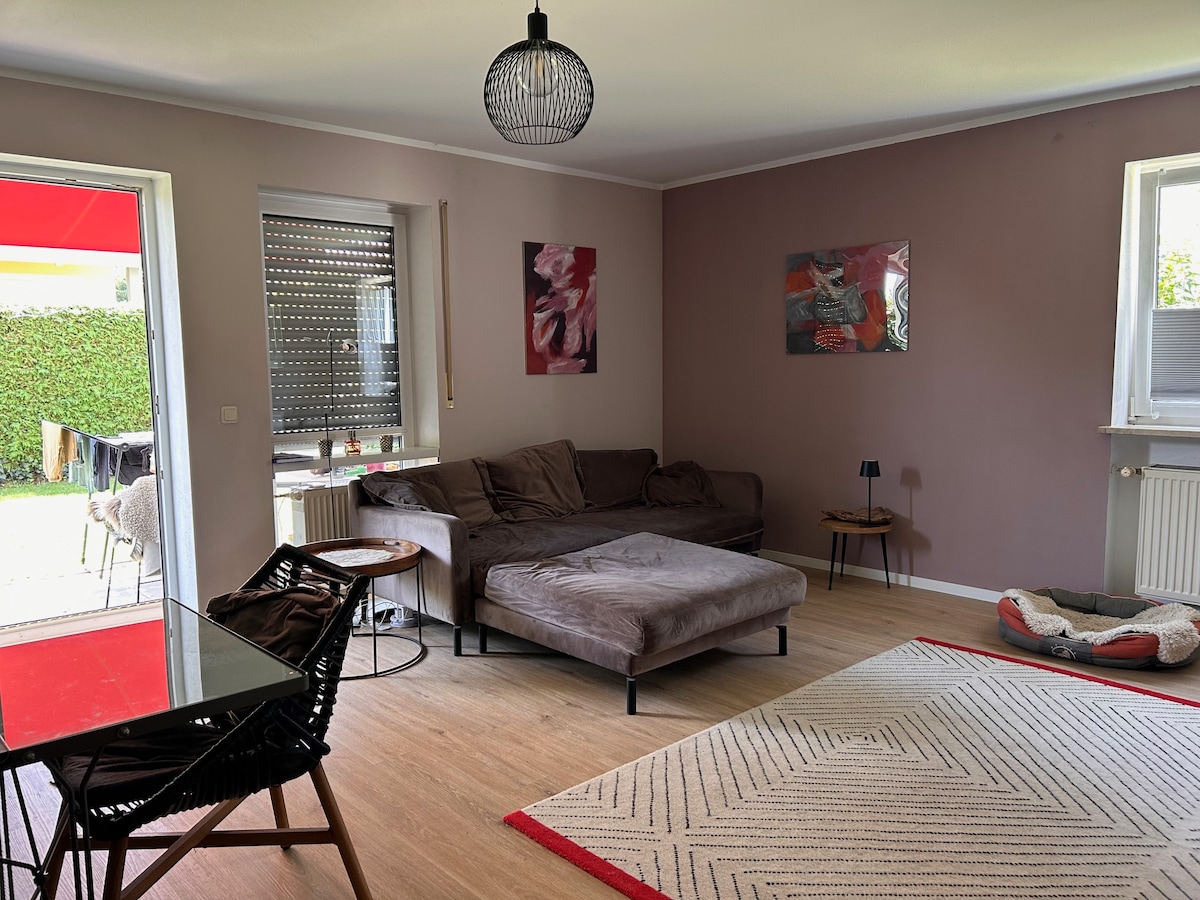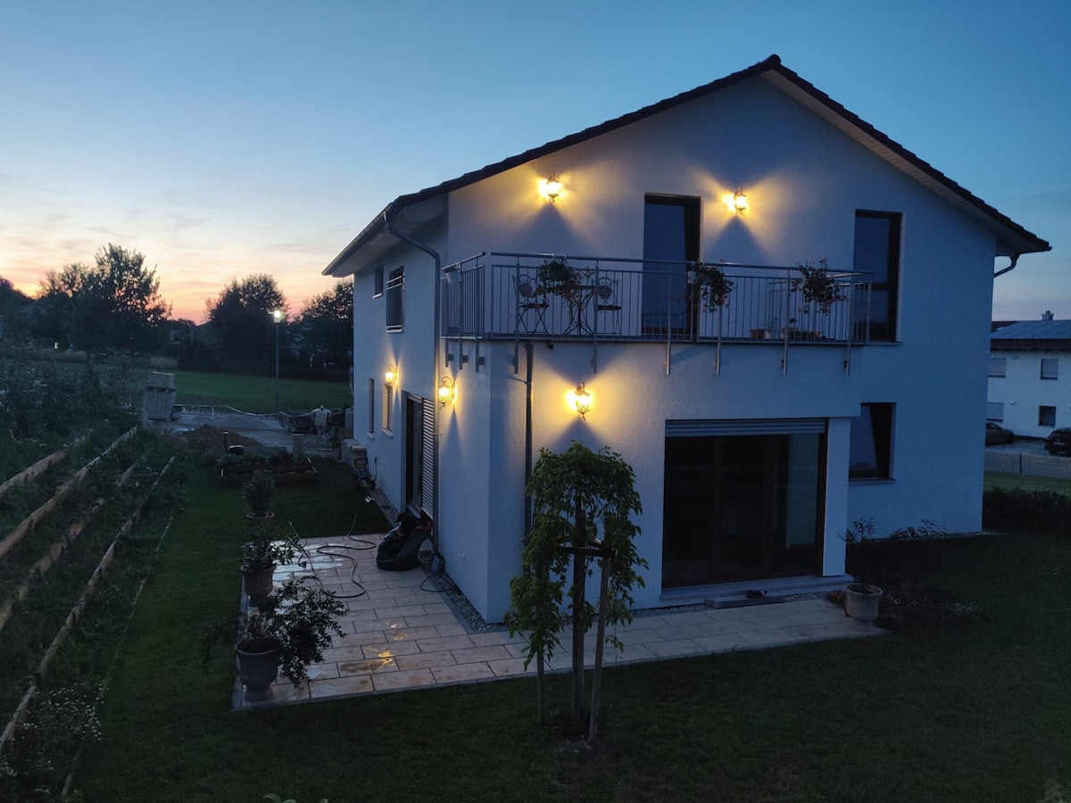इडलीक लोकेशनमध्ये प्रशस्त पहिला मजला अपार्टमेंट (अंदाजे 130 चौरस मीटर). कव्हर केलेले सीटिंग, लहान सूर्यप्रकाश टेरेस आणि उबदार सुसज्ज किचनसह स्वतंत्र प्रवेशद्वार. अपार्टमेंटमध्ये वाय-फाय, सॅटेलाइट टीव्ही, सेंट्रल हीटिंग, वॉशिंग मशीन आणि विनामूल्य पार्किंग आहे. सायकली आणि मोटारसायकलींसाठी स्टोरेज सुविधा देखील उपलब्ध आहेत (आधी व्यवस्था आवश्यक). मॅकडोनाल्ड्स, बेकरी आणि सुपरमार्केट्स (REWE, V-Markt) फक्त 500 मीटर अंतरावर आणि चालत जाण्याच्या अंतरावर.
