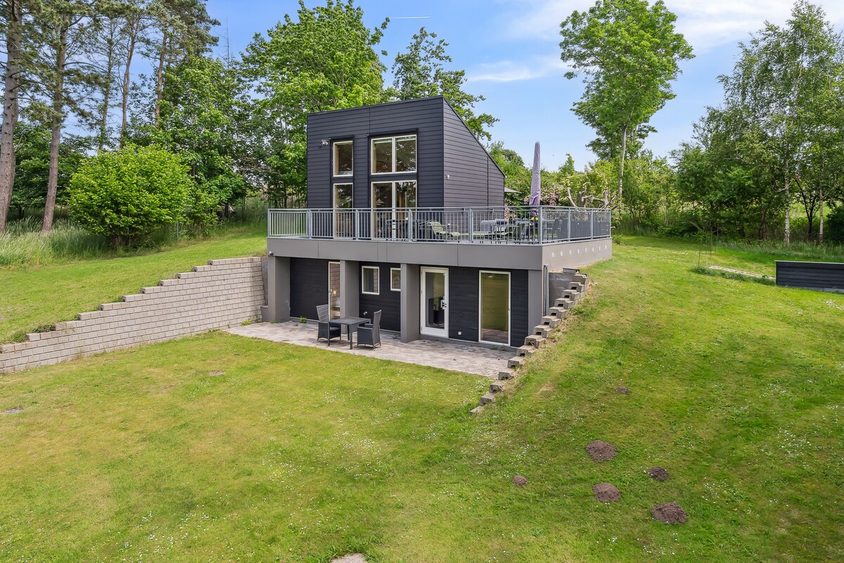 Beautiful modern cottage in the first row with magnificent views of Roskilde Fjord. High up on a hill where the fjord view all day long and the sunset is most beautiful. The house is 98 sqm and stylishly furnished with a living/dining room from which there is a clear view of the fjord. The living room has a built-in fireplace and the house contains four cosy bedrooms, a functional bathroom and separate well-equipped kitchen. From the wooden terrace there is a stair leading directly to the beach.