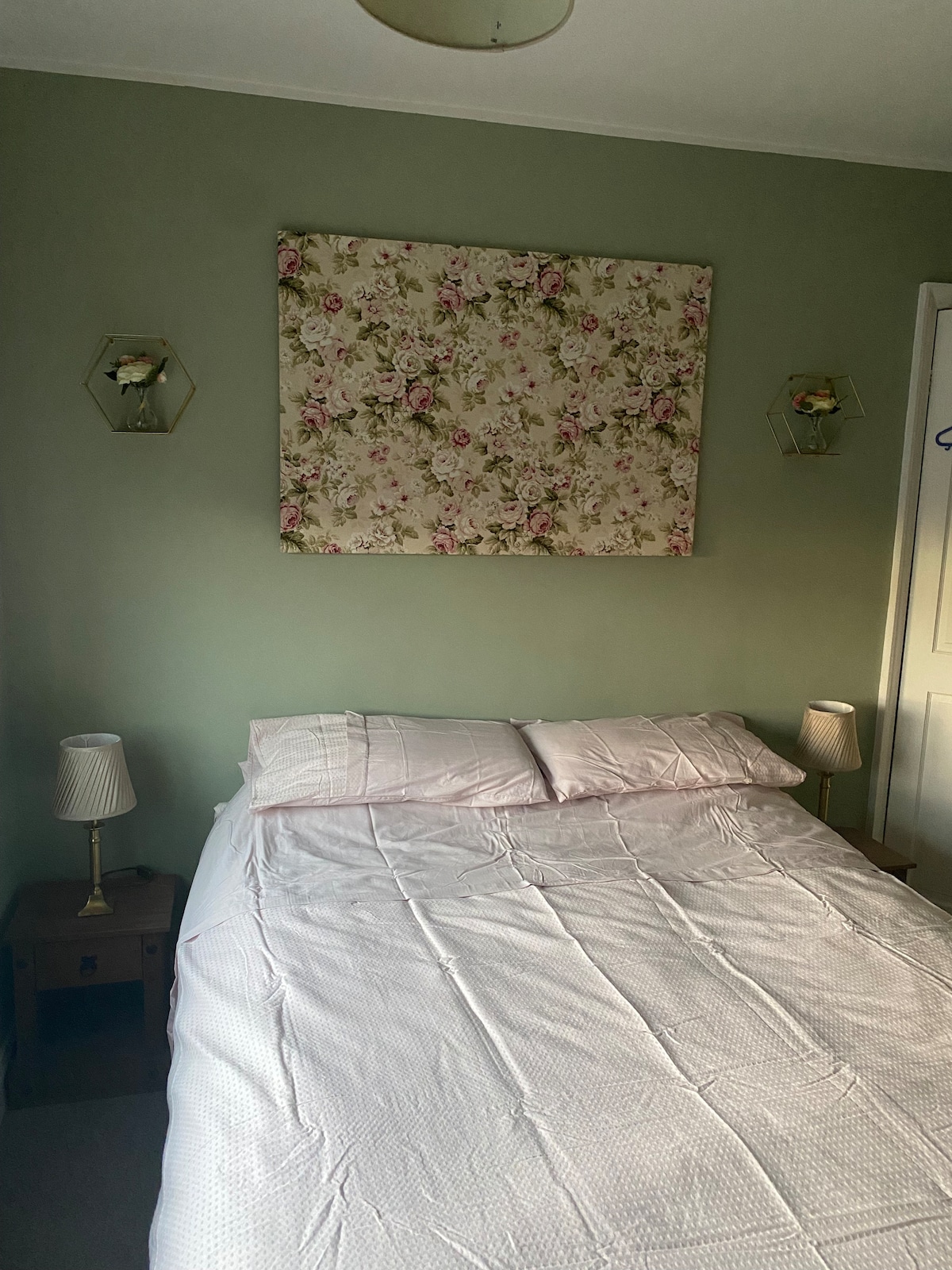 We are NOT in the city of York, but a separate town 9 miles away, just to clarify. We moved to this characterful house in Tadcaster 5 years ago, slowly renovating with a ‘Fawlty Towers’ vibe. This double room is in the attic so feels cosy, but with dual aspect original sash windows is bright and airy too. It’s the smallest of our rooms so ideal for a quick stop over but has hanging space, tea & coffee and tv and the use of our newly fitted shower room. This room isn’t suitable for large dogs.