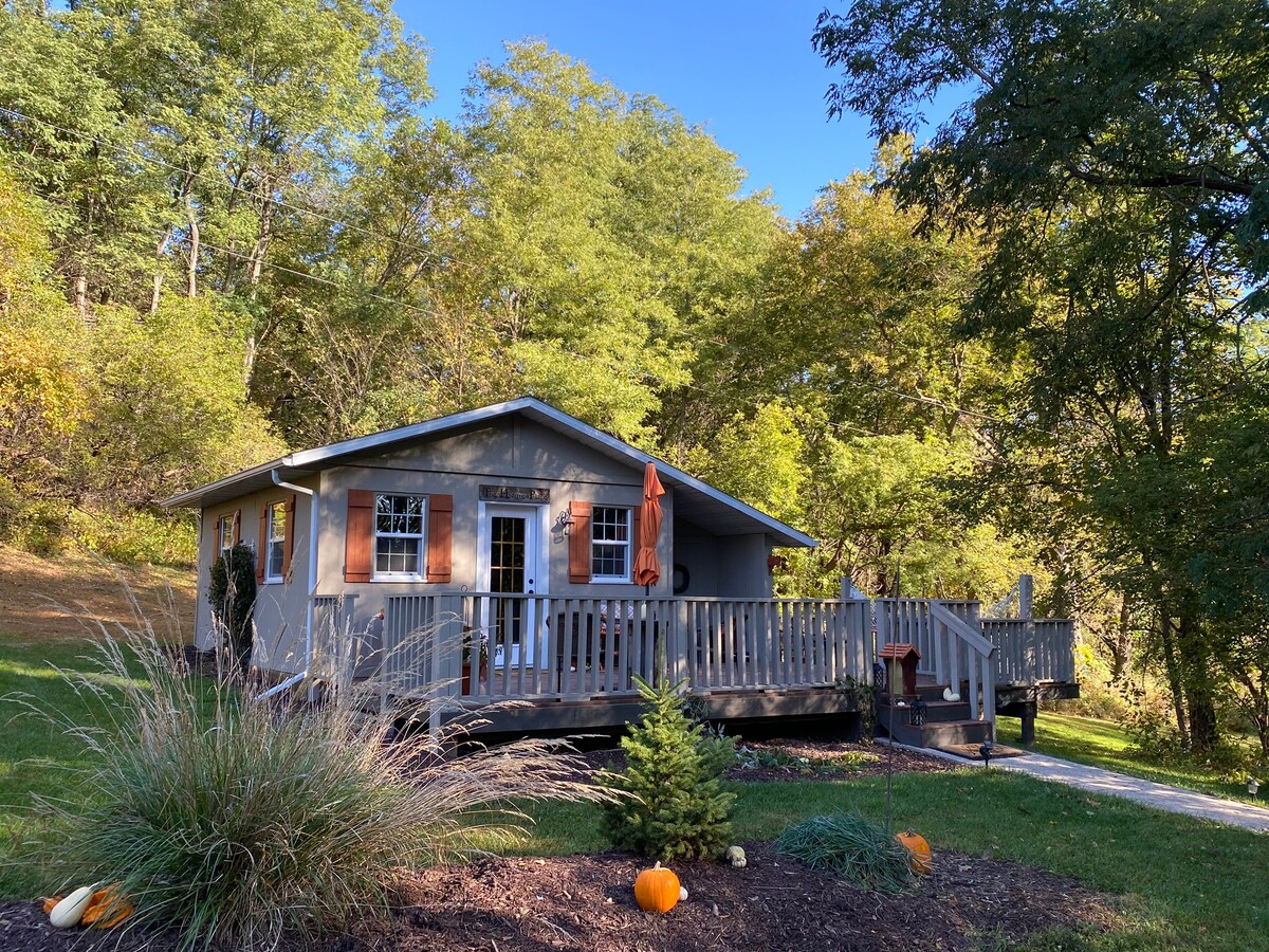 1 - क्वीन बेड असलेले आरामदायक 1 - br कॉटेज. लिव्हिंग रूममध्ये क्वीन सोफा स्लीपर आणि लव्हसीट, फ्लॅट स्क्रीन स्मार्ट टीव्ही, वायफाय, इलेक्ट्रिक फायरप्लेस आहे. हीट अँड ए/सी. किचनमध्ये मिसिसिपी आहे आणि त्यात स्टोव्ह/ओव्हन, मायक्रोवेव्ह, रेफ्रिजरेटर, कॉफी मेकर, टोस्टर, ग्लासवेअर आणि डिशेस आहेत. कोळसा ग्रिल (स्वतःचा कोळसा आणा). बाथ/शॉवर. गेस्टकडे डोअर लँडिंग एरियापर्यंत 6 पायऱ्या चढणे आवश्यक आहे. सुसज्ज लहान कुत्र्याला शुल्कासह परवानगी आहे. La Crosse Co. लायसन्स आयडी# MWAS - D6CSN9