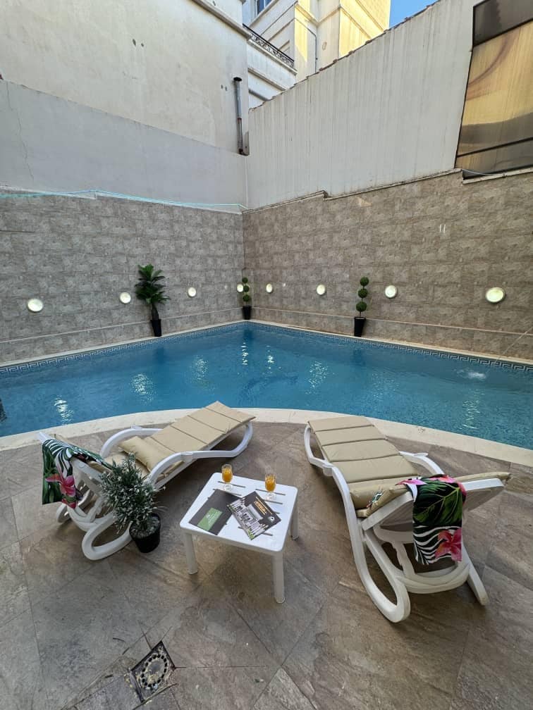 Duplex atypique et tranquille doté de tout les équipements nécessaires et situé dans un quartier très calme et sécurisé de la banlieue chic de Ben Aknoun à 30 secondes de la rocade (périph’ ) sud d’Alger. Il est composé de 3 chambres, d’une grande cuisine, 2 salles de bains, 1 garage, 1 bar et une piscine privative chauffée et couverte d’une verrière utilisable toute l’année ainsi que de tous les équipements indispensables. Très facile d’accès et proche de tout les centres importants de la ville