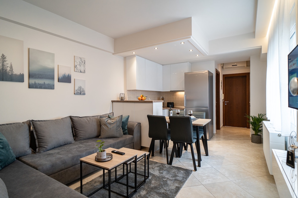 ज्यांना स्टाईल आणि आरामाची आवड आहे त्यांच्यासाठी आदर्श अपार्टमेंट! जर तुम्हाला विश्रांती आणि एक्सप्लोरचा आनंद घ्यायचा असेल तर ही जागा तुमच्यासाठी आहे! आधुनिक सजावट आणि प्रशस्त डिझाइनसह आमचे अपार्टमेंट तुम्हाला अविस्मरणीय सुट्टीसाठी होस्ट करण्यासाठी तयार आहे. जलद वायफाय, उबदार चित्रपट रात्रींसाठी नेटफ्लिक्स आणि पूर्णपणे सुसज्ज किचनसह, तुम्ही आल्यापासून तुम्हाला घरी असल्यासारखे वाटेल. तुमची वास्तव्याची जागा बुक करा आणि लारिसामधील तरुण प्रवाशांसाठी ही सर्वोत्तम निवड का आहे ते शोधा!