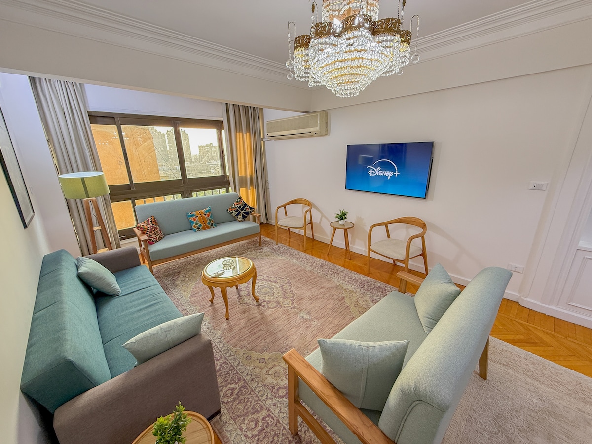 मध्य कैरोमधील तुमच्या आरामदायक निवांत जागेत तुमचे स्वागत आहे 🏡✨ कैरोच्या मध्यभागी 🏙️ उत्तम प्रकारे वसलेल्या या आकर्षक 3 बेडरूम, 2 बाथरूम असलेल्या विश्रांतीस्थळी, विचारपूर्वक लावलेल्या पाच बेड्ससह 🛏️, 7 पर्यंत पाहुण्यांना आरामात सामावून घेता येते. कुटुंबांसाठी किंवा मित्रांच्या ग्रुप्ससाठी आदर्श 🤍, ही जागा आराम, गोपनीयता आणि सोयीचा परिपूर्ण समतोल देते—ज्यामुळे प्रत्येकाला आराम करण्यासाठी आणि घरी असल्यासारखे वाटण्यासाठी जागा मिळते. आरामात बसा, स्वतःला सेट करा आणि तुमच्या स्वतःच्या घरासारख्या वाटणाऱ्या या जागेवरून कैरोच्या खऱ्या लयीचा अनुभव घ्या 💫.