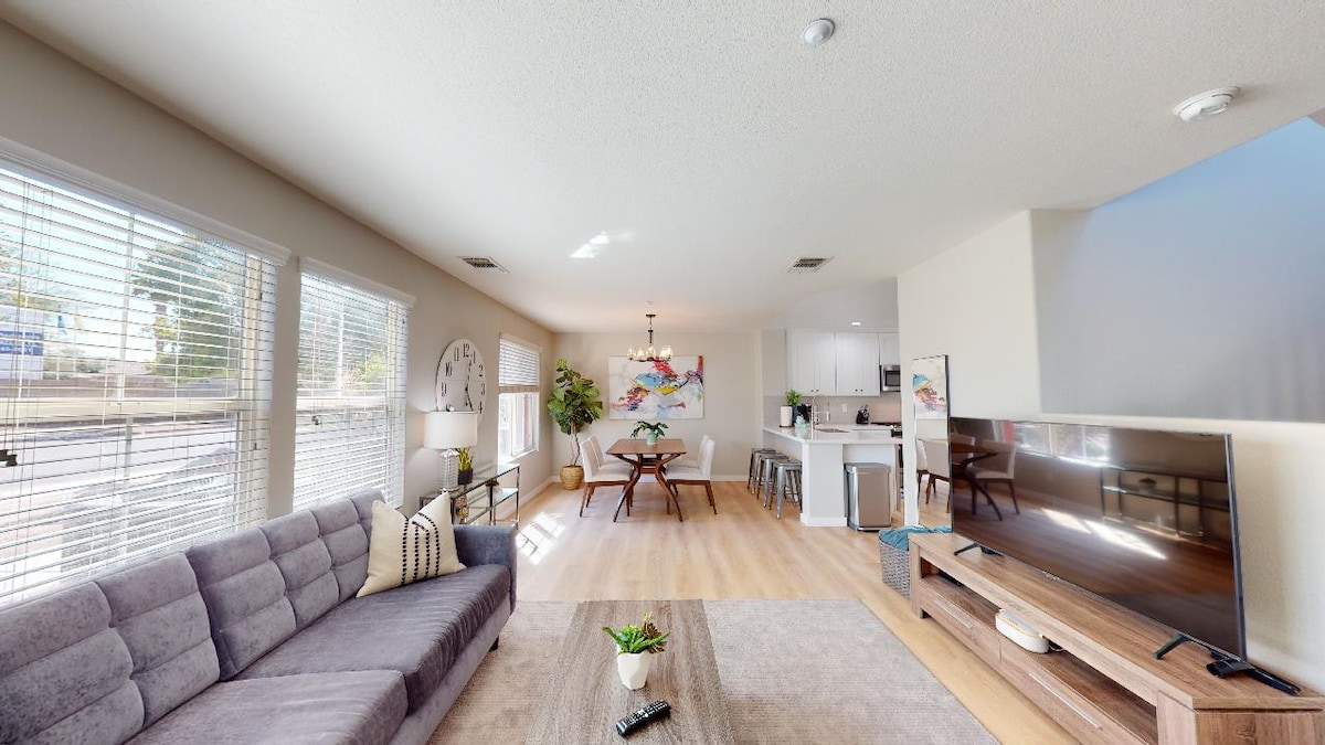 आमच्या घरी तुमचे स्वागत आहे, आनंद घ्या: - नेटफ्लिक्स, प्राइम, हुलू, डिस्ने+ सह 75" 4K रोकू टीव्ही - 1 क्वीन बेड आणि 1 स्लीपर सोफा (क्वीनचा आकार) - लक्झरी शॉवर आणि आधुनिक बाथरूम - पूर्णपणे सुसज्ज, स्टॉक केलेले आणि स्वच्छ किचन - वॉशर ड्रायर - स्वतंत्र, जलद आणि सुरक्षित वायफाय (300 Mbps) - स्वतंत्र वर्कस्पेस - स्वतःहून चेक इन - प्रशस्त कपाटे - स्टीमर, हेअर ड्रायर, सॅनिटायझर्स - वातावरणासाठी उबदार दिवे - लेव्हल 2 EV चार्जर. - ECRMC जवळचे सोयीस्कर लोकेशन आणि शॉपिंग स्टोअर्स.