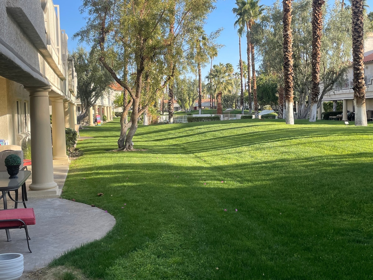 सिटी ऑफ कॅथेड्रल सिटी STVR परमिट क्रमांक BLIC -000872 -2022. डेझर्ट प्रिन्सेसच्या गेटमधून गेल्यावर तुम्हाला अपग्रेड केल्यासारखे वाटेल. रिसॉर्ट 30+ पूल्ससह छान लँडस्केप केलेले आहे. युनिटमध्ये अतिरिक्त मोठ्या पॅटीओ दरवाजे आणि खिडक्या आहेत ज्या दूर अंतरावर माऊंटन व्ह्यूज असलेल्या सुंदर दृश्यांकडे पाहत आहेत. 10' उंच छत असलेली मोकळी जागा, किंग साईझ बेड असलेला मास्टर सुईट तुम्हाला येथे राहणे खूप आरामदायक वाटेल. टिटो (फोटोमध्ये पहा) तुमच्यासोबत शेअर करताना आनंद होत आहे.