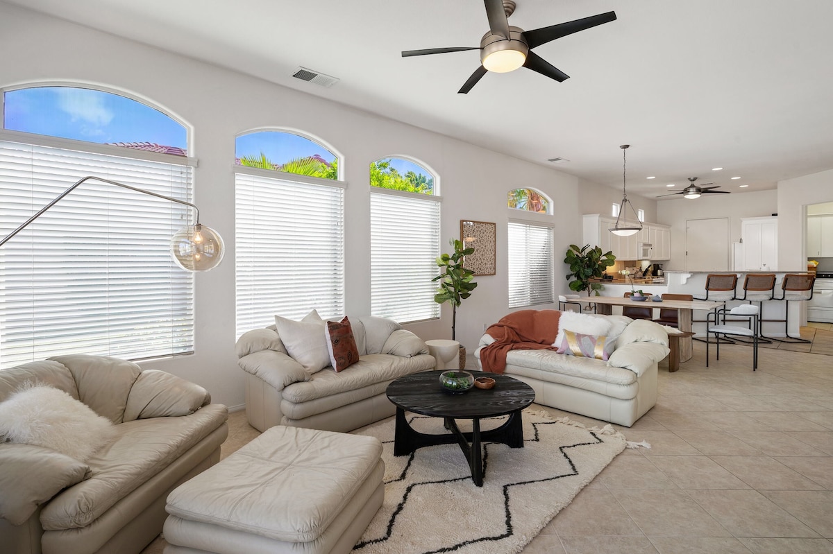 भारतीय पाम्समधील हे प्रशस्त आणि आलिशान घर वाळवंट एक्सप्लोर करू इच्छिणाऱ्या आणि अप्रतिम पर्वतांचे दृश्ये पाहण्याच्या प्रयत्नात असलेल्या कुटुंबांसाठी आदर्श गेटअवे आहे. गेटेड कम्युनिटी एकाधिक स्विमिंग पूल्स/स्पा, जिम, गोल्फ कोर्स आणि अगदी टेनिस कोर्ट्स यासारख्या विशेष सुविधा आणि ॲक्टिव्हिटीजचा ॲक्सेस प्रदान करते. तुम्ही चित्तवेधक दृश्यांची प्रशंसा करत असाल किंवा त्या भागात राहणाऱ्या कासव, रोड - रनर्स आणि क्रेनची झलक पाहत असाल, तर तुम्ही तुमच्या वास्तव्याच्या प्रत्येक क्षणाची नक्कीच कदर कराल!