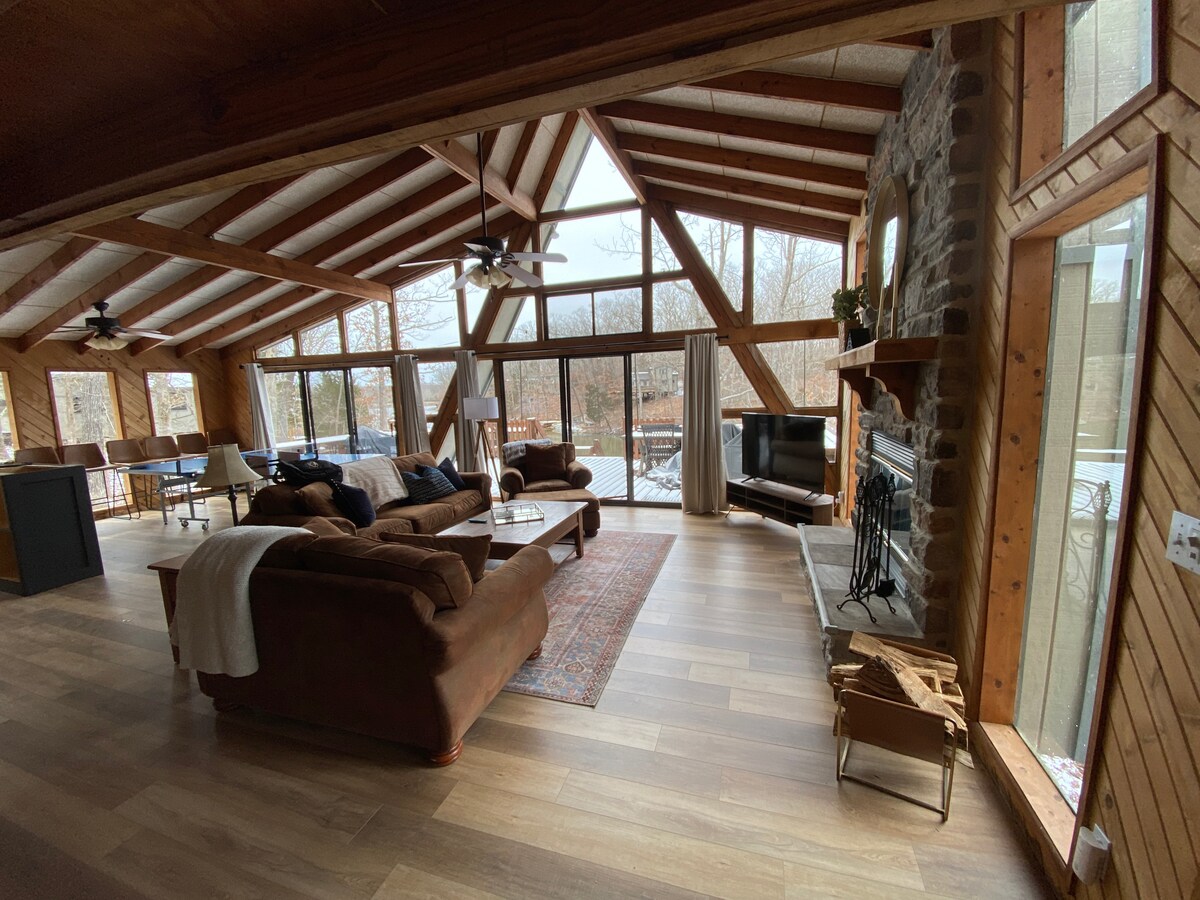 फॉक्सफायर तलावाकडे पाहणाऱ्या जंगलात वसलेले, हे ए-फ्रेम वर्षाच्या चारही ऋतूंमध्ये सुट्टीसाठी योग्य आहे. जेव्हा बर्फ पडतो, तेव्हा ती हिवाळ्यातील उत्तम विश्रांतीस्थळात रूपांतरित होते. दगडी फायरप्लेसच्या बाजूला आरामात बसा, जिथे तलावाचे दृश्य बर्फाच्छादित झाडांनी वेढलेले आहे. हवामान उबदार होताच, तलावाची ओढ लागते! आमच्या खाजगी डॉकवरून फॉक्सफायर लेकचा थेट ॲक्सेस मिळवा. मासेमारी, पोहणे किंवा फक्त उन्हात बाहेर बसून आनंद घेण्यात तुमचे दिवस घालवा. हे शॅले तुम्हाला कोणत्याही ऋतूमध्ये आनंद आणि विश्रांती मिळवण्यात मदत करेल.