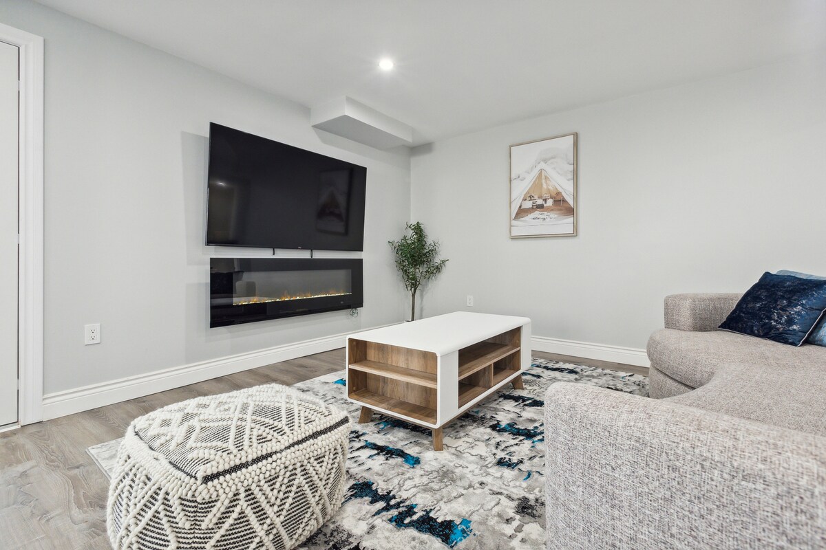 स्पोर्ट्सप्लेक्सच्या जवळ, आमच्याकडे एक प्रशस्त वॉक - आऊट बॅकयार्ड आणि पिकनिक टेबल आहे. सुंदर दृश्य; शांत आसपासचा परिसर. सुविधा आणि शॉपिंग, हायकिंग आणि बाइकिंग ट्रेल्स, बेलवुड लेक, एलोरा गॉर्ज, एलोरा मिल आणि क्वेरी जवळ. जोडपे, सोलो ॲडव्हेंचर्स, बिझनेस प्रवासी आणि आम्ही पाळीव प्राण्यांसाठी अनुकूल आहोत! विनामूल्य वायफाय. डबल (क्वीन नाही) बेड आणि शॉवरसह खाजगी वॉशरूम. पूल टेबल, टेबलटॉप हॉकी आणि डार्ट्ससह गेम्स रूम. फ्रिज, फ्रीजर, टोस्टर ओव्हन, केटल, मायक्रोवेव्ह आणि कुकटॉप.