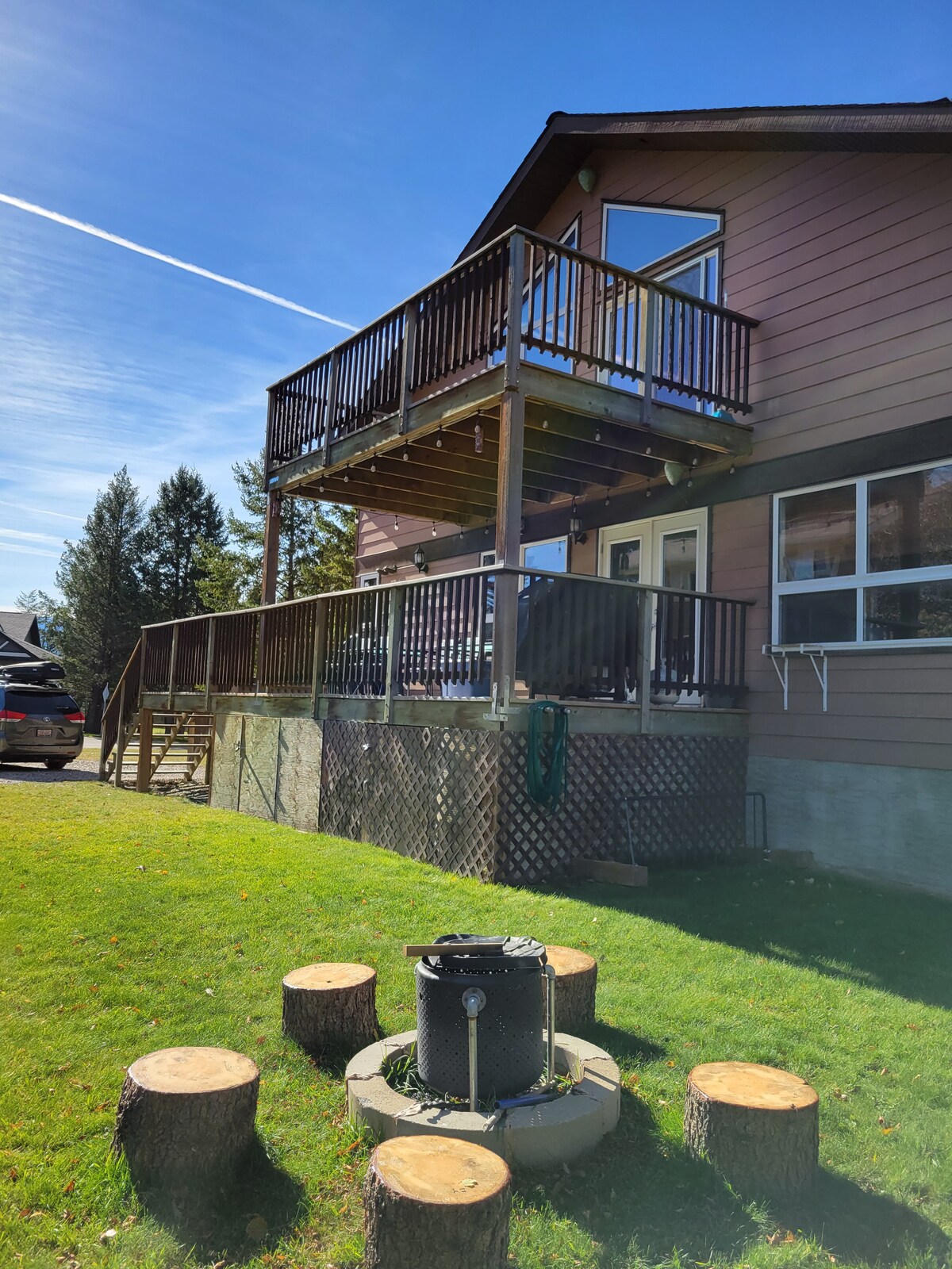 कोलंबिया तलावाजवळ वसलेल्या या सुंदर, लक्झरी केबिनमध्ये सर्व काही आहे. प्रत्येकासाठी खरोखर काहीतरी आहे; मग तुम्ही हिवाळ्यातील अप्रतिम स्की गेटअवे शोधत असाल किंवा तलावावर घालवण्यासाठी उन्हाळ्याचे गरम दिवस शोधत असाल. तुम्ही आऊटडोअर उत्साही असल्यास किंवा फक्त ढोंग करू इच्छित असल्यास, अमर्याद वाळवंटाच्या ॲक्सेससह एक्सप्लोर करण्यासाठी हे एक परिपूर्ण बेस कॅम्प आहे. येथील दृश्ये अतुलनीय आहेत. ओव्हरसाईज केलेल्या डेकचा खाजगी 4 - व्यक्तींचा हॉट टब आणि कव्हर केलेले बसण्याचे क्षेत्र कोलंबिया लेक आणि रॉकी माऊंटन्सच्या नजरेस पडते.