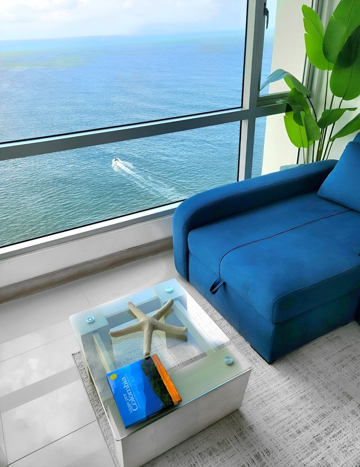 Welcome to a Stylish Corner Apartment with stunning open sea views. Breathtaking sunsets. Come enjoy a home away from home. Pleasant and relaxing vibes. Full Size Kitchen. Just 50 yards distance from the building entrance to the beach. Amazing location with everything at your fingertips in this 24 hour doorman building. Groceries, convenience stores, wine stores, pharmacies, restaurants, and much more. Easy 5-10 minute commute into the old colonial city.