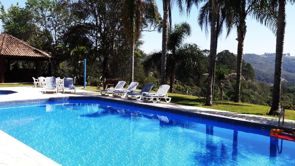 साओ पाउलोपासून 58 किमी अंतरावर असलेल्या साओ रोकच्या ग्रामीण भागात असलेले फार्म. बाल्कनी, इंटिग्रेटेड किचन, फायरप्लेस, 3 सुईट्स असलेले घर; डिशवॉशर, इलेक्ट्रिक ओव्हन, कुकटॉप, लाकूड कुकर, मायक्रोवेव्ह, ब्रूवरीसह सुसज्ज गॉरमेट किचन. पिझ्झा ओव्हन, बार्बेक्यू; सपोर्ट किचन, लॉकर रूम आणि बाथरूमसह 2 पूल; वायफाय आणि Chromecast इंटरनेट फायबर स्पीड 50 mb