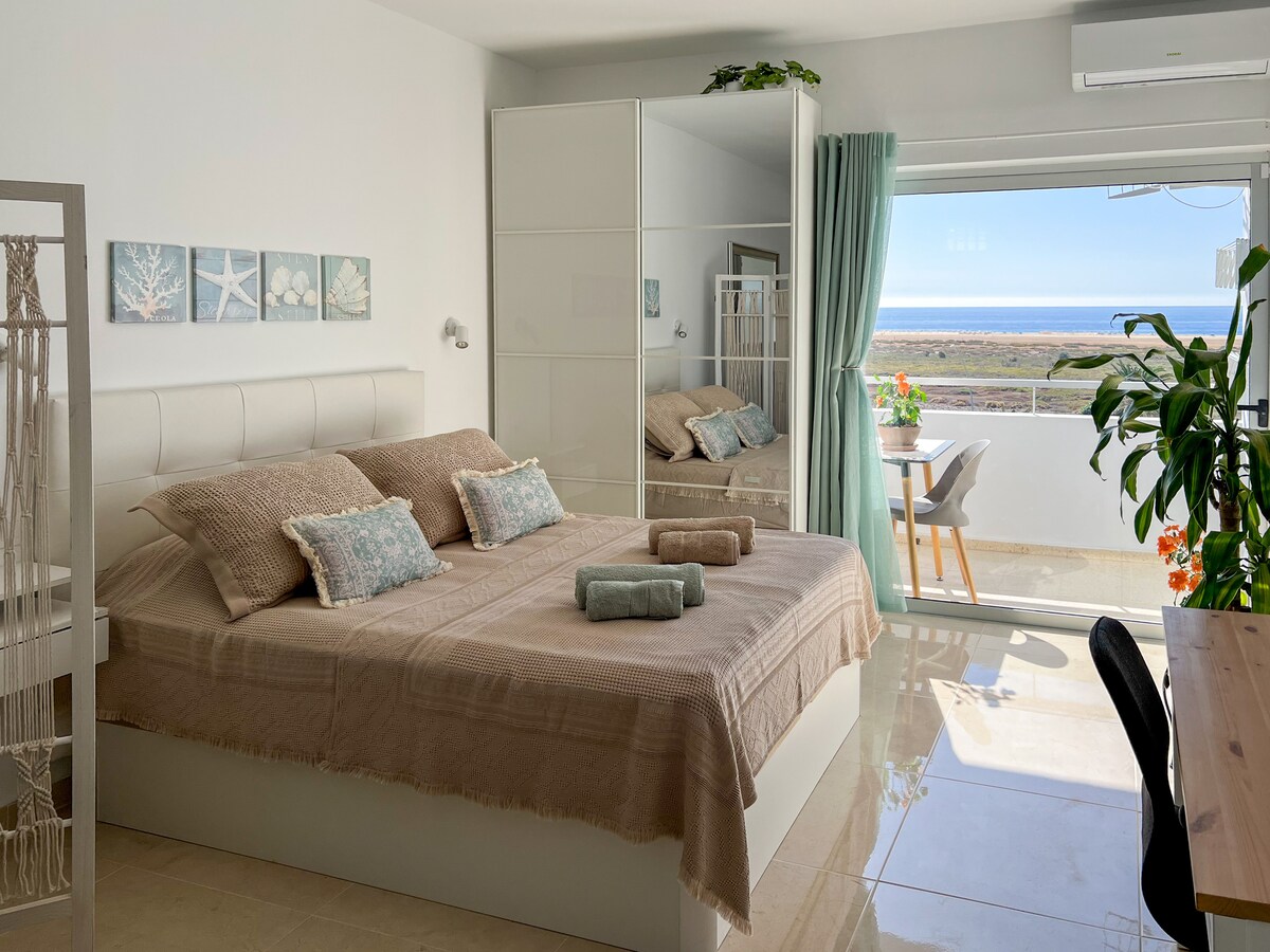 सर्व आरामदायक आणि वैयक्तिकृत सहाय्याने, शांततेत, आरामात, योग्य सुट्टीचा आनंद घेण्यासाठी एक जादुई जागा. Fuerteventura Costa Calma च्या दक्षिणेस असलेल्या प्रसिद्ध Sotavento बीचच्या अविश्वसनीय दृश्यांसह समुद्राकडे तोंड करून, तुमच्या डोळ्यासमोर समुद्रावरून उगवणाऱ्या सूर्य आणि चंद्राची प्रशंसा करत आहे. तुमच्या अविस्मरणीय सुट्टीसाठी एक अनोखी सेटिंग. माझी बहिण नोमी आणि मी जवळपास 2 अपार्टमेंट्स आहोत आणि आम्ही त्यांना खूप प्रेमाने मॅनेज करतो.