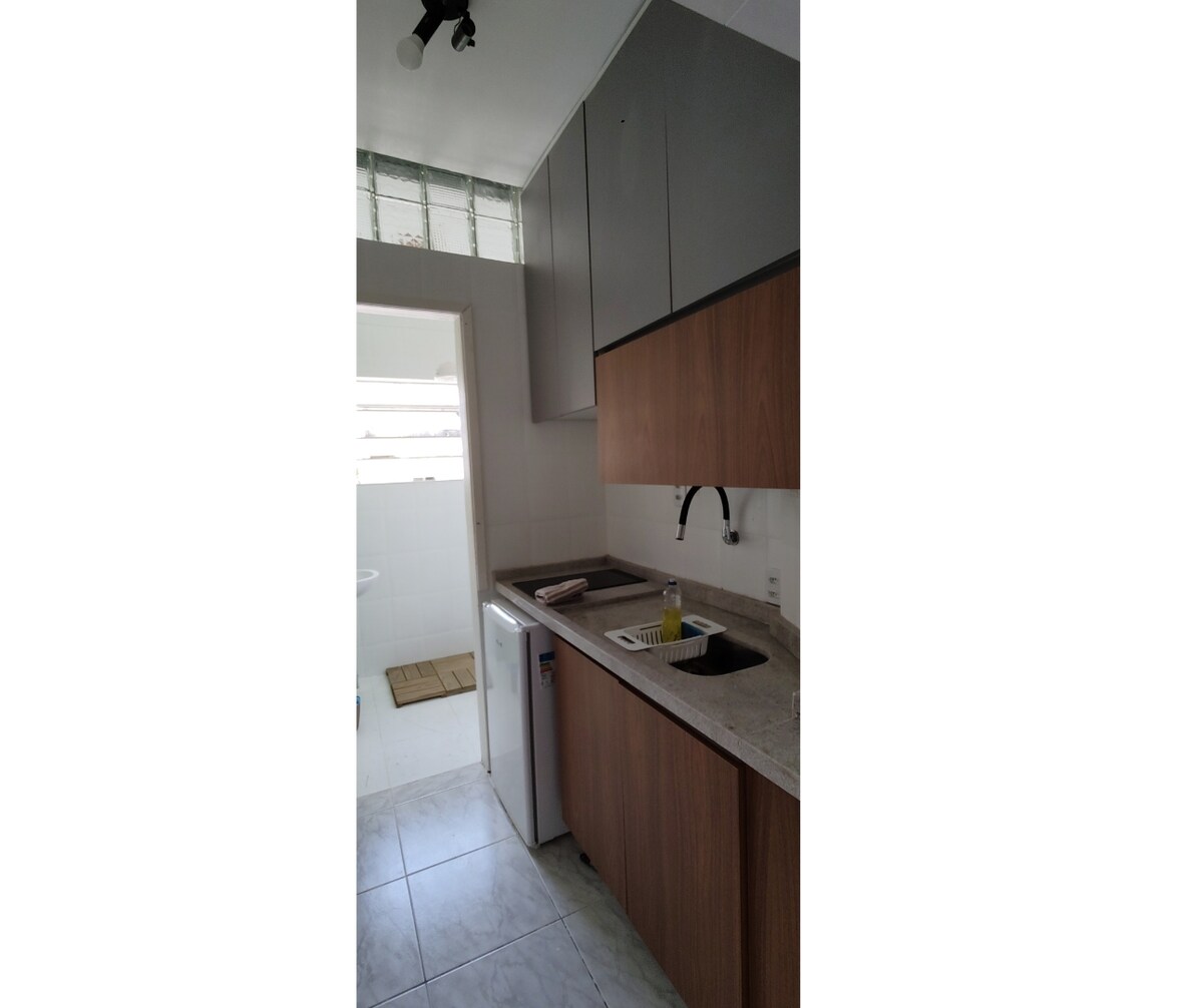 आरामदायक किटनेट अल्पकालीन वास्तव्यासाठी, होम ऑफिस आणि दीर्घ हंगामासाठी आदर्श. लिबरडेड सबवेपासून 3 मिनिटांच्या अंतरावर - वायफाय 500mb - सीलिंग फॅन - मशीन लावा 3 किलो आणि कोरडे 1 किलो - फ्लोअर वरल - ॲडजस्टेबल स्टँडसह Samsung 50 स्मार्ट टीव्ही - नोटबुक, दिवा, तापमान आणि आर्द्रता मार्करसह घड्याळासाठी सपोर्ट असलेले डेस्क. - मागे घेण्यायोग्य टेबल - मिनीबार - वॉटर फिल्टर - किचन एअर प्युरिफायर - इंडक्शन कुकिंग - मायक्रोवेव्ह - हेअर ड्रायर - स्वच्छ शॉवर