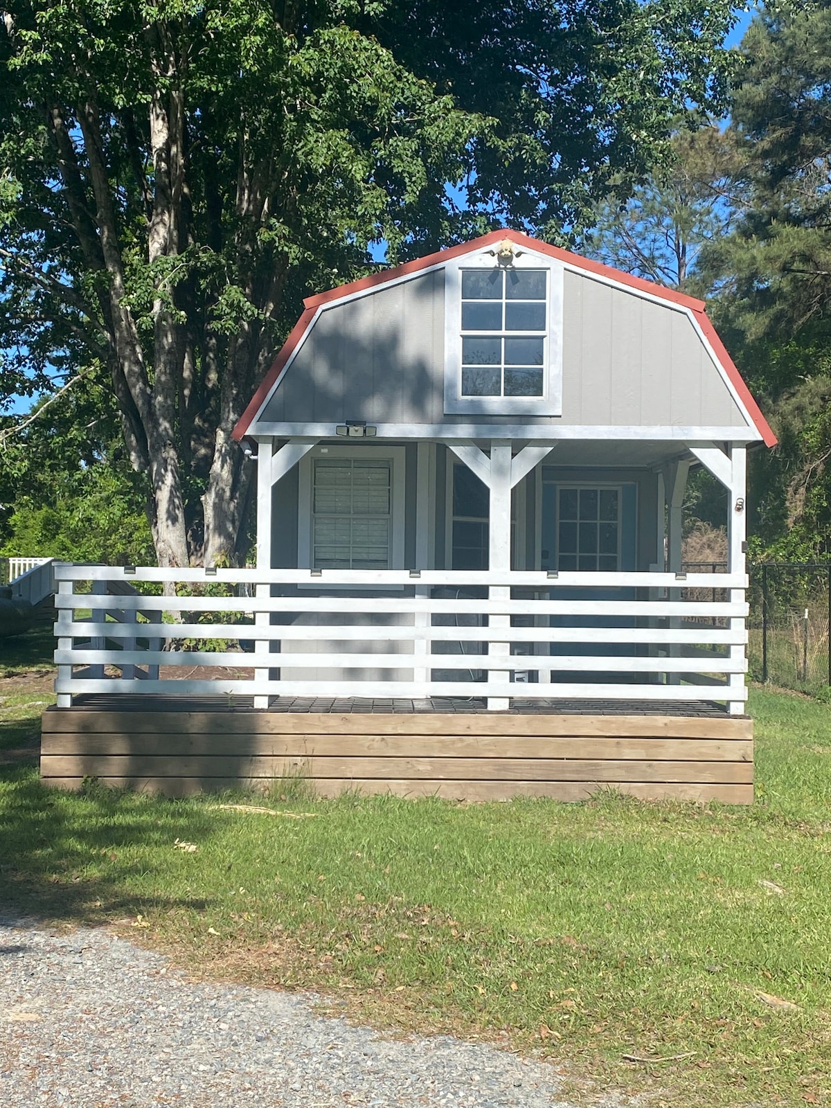 Located in rural Jesup, 15 minutes from downtown with a Walmart and restaurants. Our tiny home offers 1 full size bed, a small bathroom and kitchenette. There are two mini refrigerators available, along with a microwave, hot plate and Keurig coffee maker. A Smart TV is mounted and wifi is available. For guest comfort there is a window unit and heaters available. The Tiny House is on our family farm with a dog, chickens, turkeys and pigs. No cleaning fees are added.