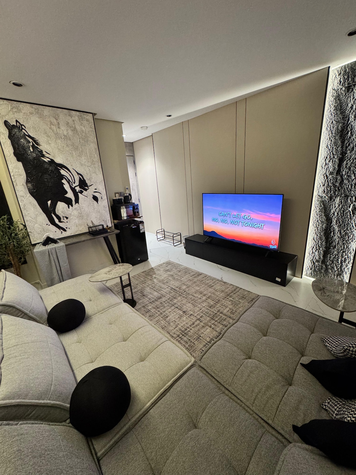 समुद्राच्या दृश्यासह बाल्कनी आणि 98” टीव्हीसह लक्झरी अपार्टमेंट