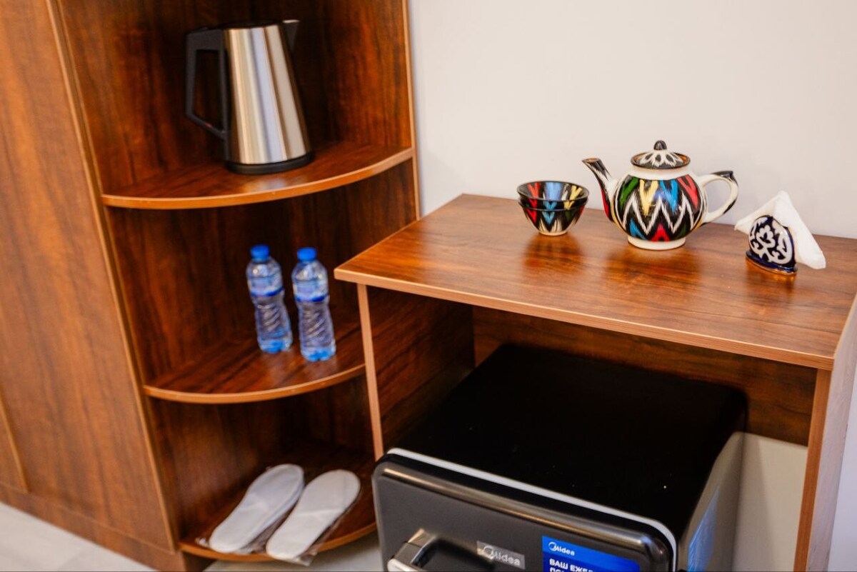 Welcome to our brand-new and cozy apartment in the heart of Samarkand! You’ll feel right at home here. The apartment is fully new, featuring modern design and high-quality finishes. It comes with all the essentials: a fully equipped kitchen, a comfortable bedroom, high-speed internet, and a warm atmosphere. The location is perfect for exploring historical landmarks, and there are cafes and shops nearby. We’re confident that your stay will be both comfortable and memorable!
