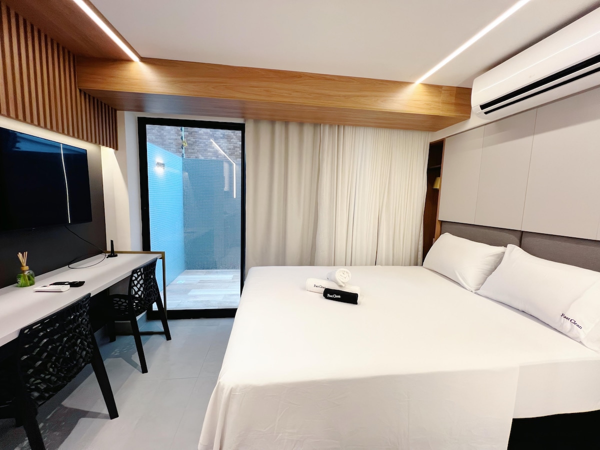 अनोखी जागा, आधुनिक, स्टाईलिश, पूर्णपणे सुसज्ज (किचनमधील वस्तू, बेड आणि बाथ), सोपे चेक इन (24 - तास कन्सिअर्ज आणि डिजिटल की), फिरणारे पार्किंग उपलब्ध (कव्हर केलेली जागा) असलेले स्टुडिओ/लॉफ्ट. उत्कृष्ट लोकेशन (बेसा), शॉपिंग मॉल, रेस्टॉरंट्स, फार्मसीज, सुपरमार्केट्स, बँका, गॅस स्टेशन्स आणि शहराच्या काही मुख्य दृश्यांच्या जवळ. ज्यांना राज्यातील एका सर्वोत्तम बीचचा सामना करण्यासाठी सीझन घालवायचा आहे त्यांच्यासाठी हे आदर्श आहे.