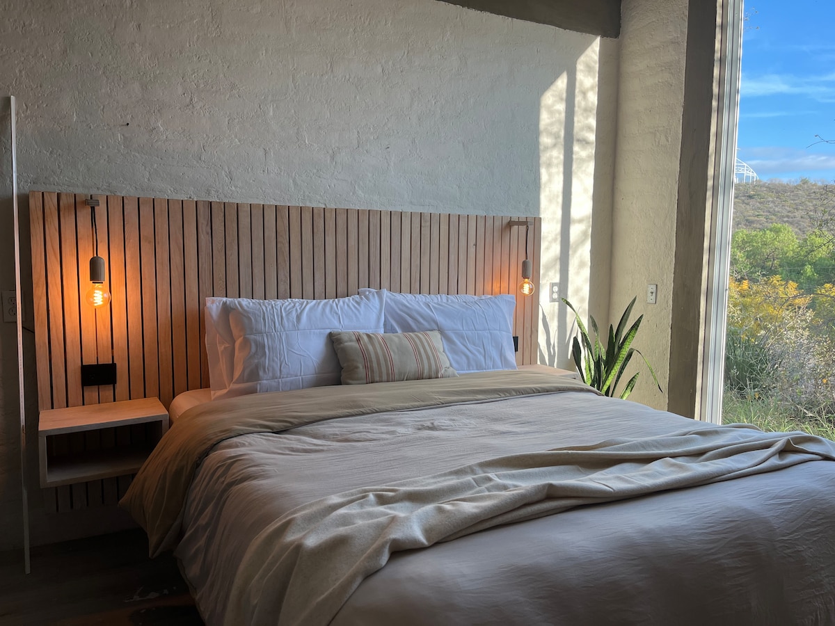 सॅन मिगुएल डी अलेंडेचा आनंद घ्या पण मेक्सिकन रँचोच्या देशाच्या जीवनाचा अनुभव घेत असताना पर्यटकांच्या मार्गापासून दूर राहणे पसंत करा. ही अशी जागा आहे जिथे तुम्ही अल्प किंवा दीर्घ कालावधीसाठी वास्तव्य करू शकता. आर्किटेक्ट/लँडस्केप आर्किटेक्टने डिझाईन केलेले हे अनोखे घर, विलुप्त झालेल्या ज्वालामुखीच्या पिकॅचोसच्या टेकड्यांमध्ये वसलेल्या एका सुंदर 11 एकर प्रॉपर्टीवर आहे. दोन बेडरूम्स आणि एक ऑफिसची जागा वरच्या मजल्यावर आहे. तळमजल्यावरील लिव्हिंग/डायनिंग/किचन दरीच्या विस्तृत दृश्यांसाठी खुले आहे.